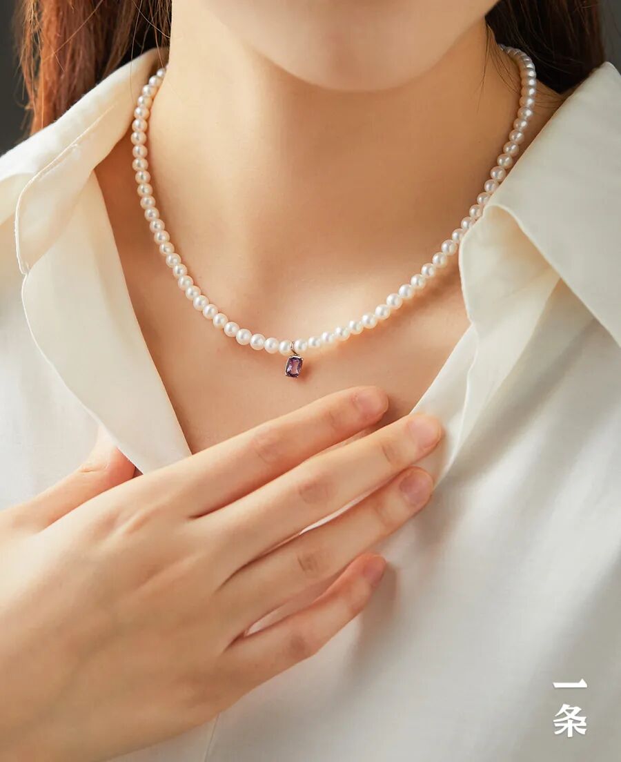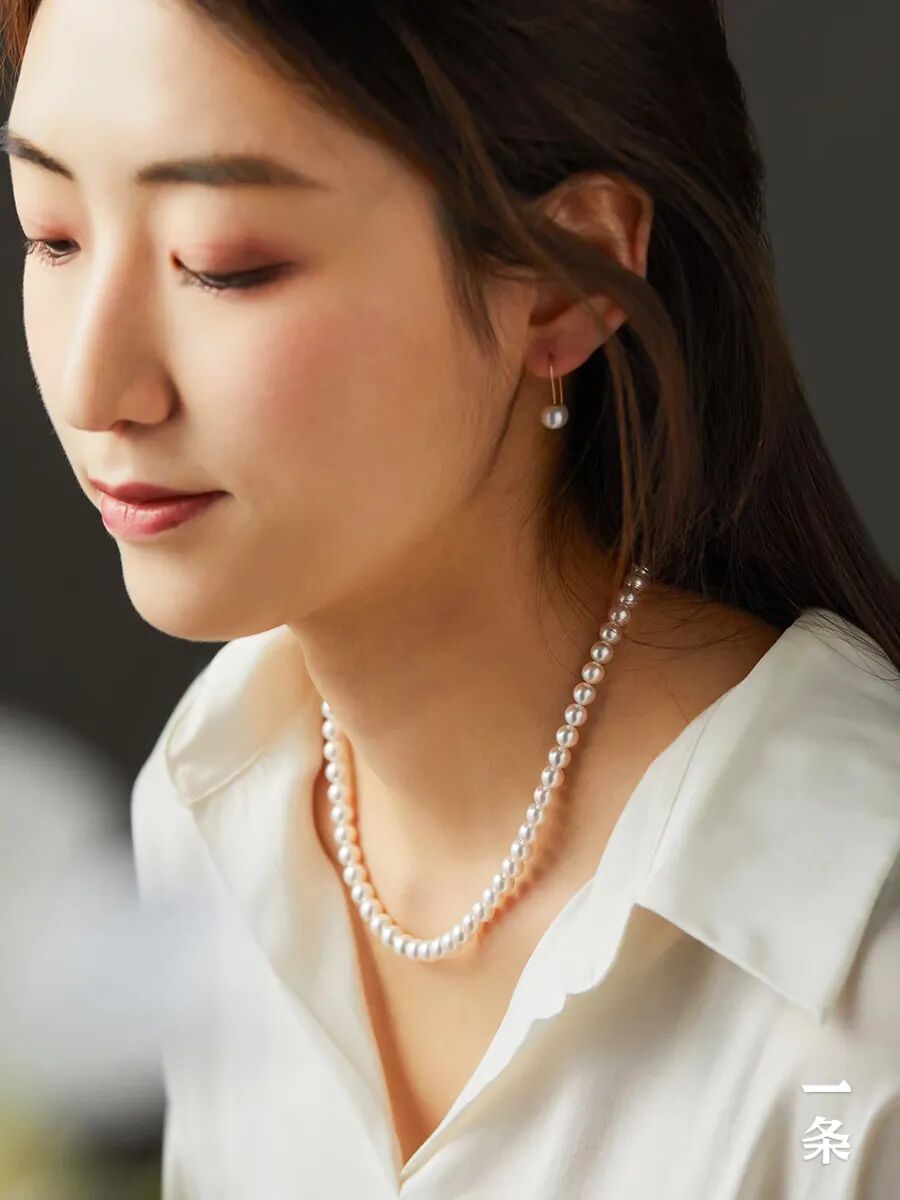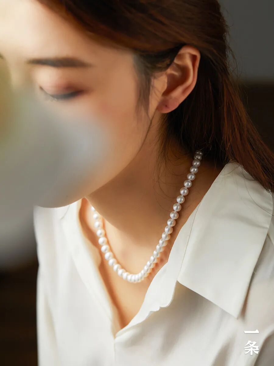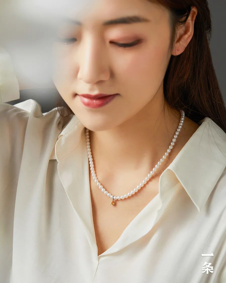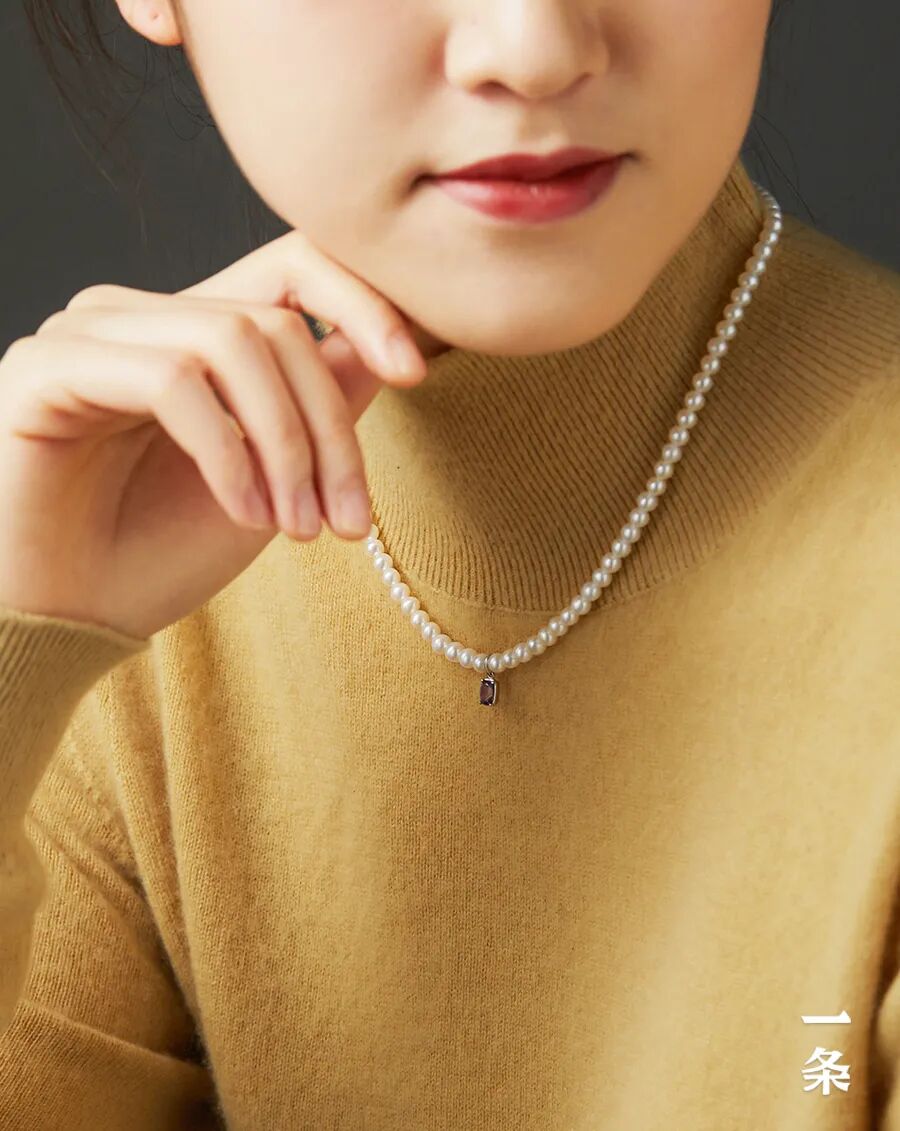 小巧的珍珠在脖子上汇聚光芒,分外有灵气,具有一种内秀的美感。