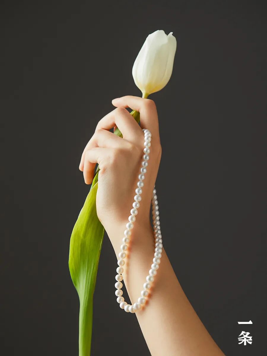 珍珠项链,温柔、优雅,又不仅于此。它也可以是洒脱、文艺、闲适的风格。