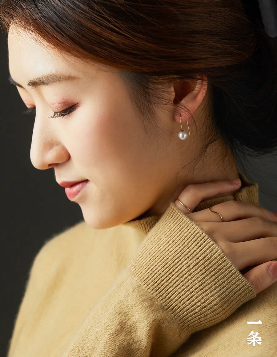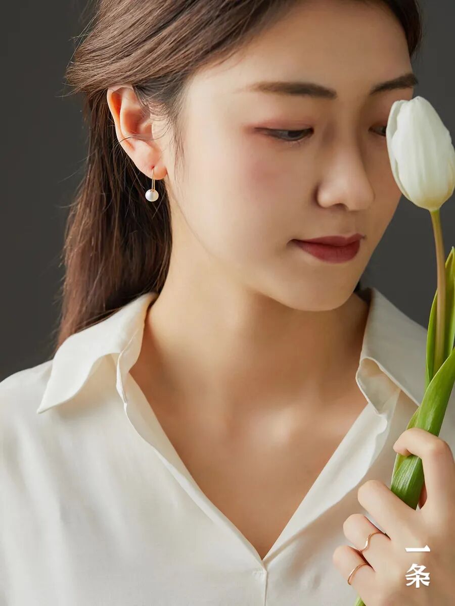 金属配件是925银材质,背后是精致的金属圆球扣,与圆形的珍珠形成呼应。