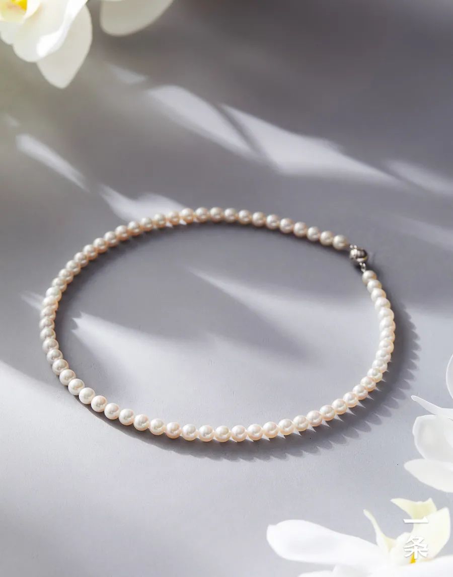 这是一款珍藏级的珍珠项链——天女极光Akoya海水珍珠。
