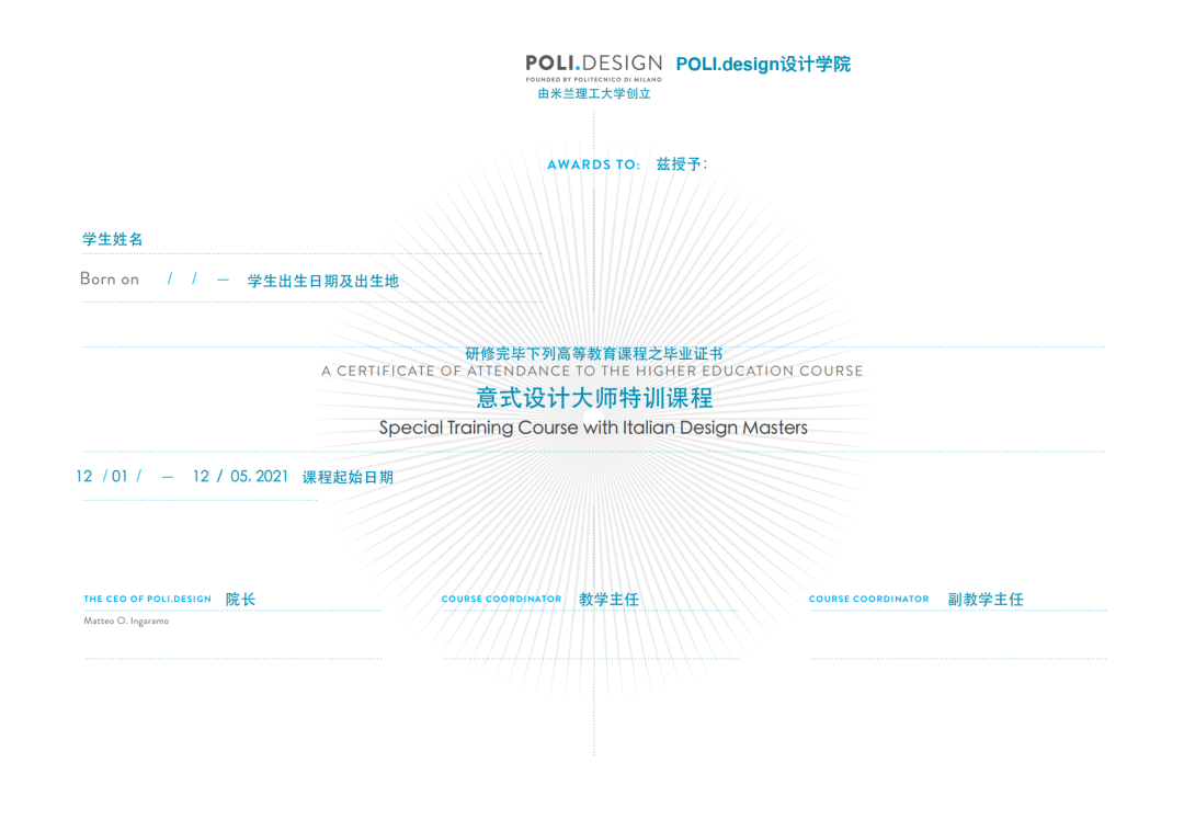 米兰理工大学POLI.design设计学院结业证书(如下示例)