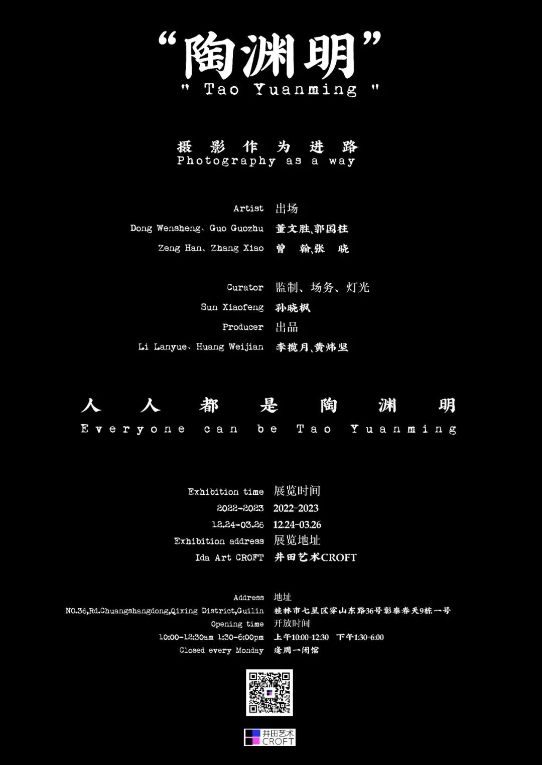 展览看点:“陶渊明”作为现实的镜像——个人通过生存感知“陶渊明”对于自身的意义。艺术家的镜头属于个人的角度与观念,展览似是而非的主题设定中让历史与现实、影像与诗性显得如此亲近的时候滋漫出一种无法言表的淡然的忧伤,关涉消逝与折返,同时再次开启了摄影作为历史记忆与时间逗留的内在现实——对于过去、现在或是未来。