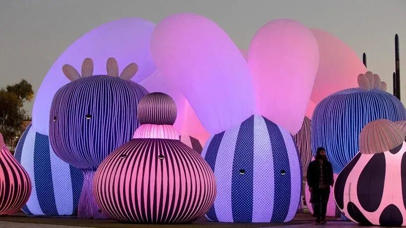 “飞船交响乐团”是一个由16个来自异世界的生物组成的交互式灯光装置,最高可达6米。