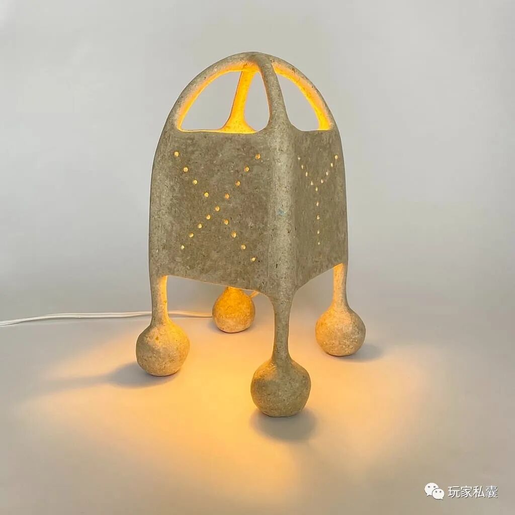 从自发光的深海未知生物获得灵感而设计的“荧光素媒”灯,则以一种难以描述的针织纹理和面包一样的质感,咬一口应该蛮香的吧。