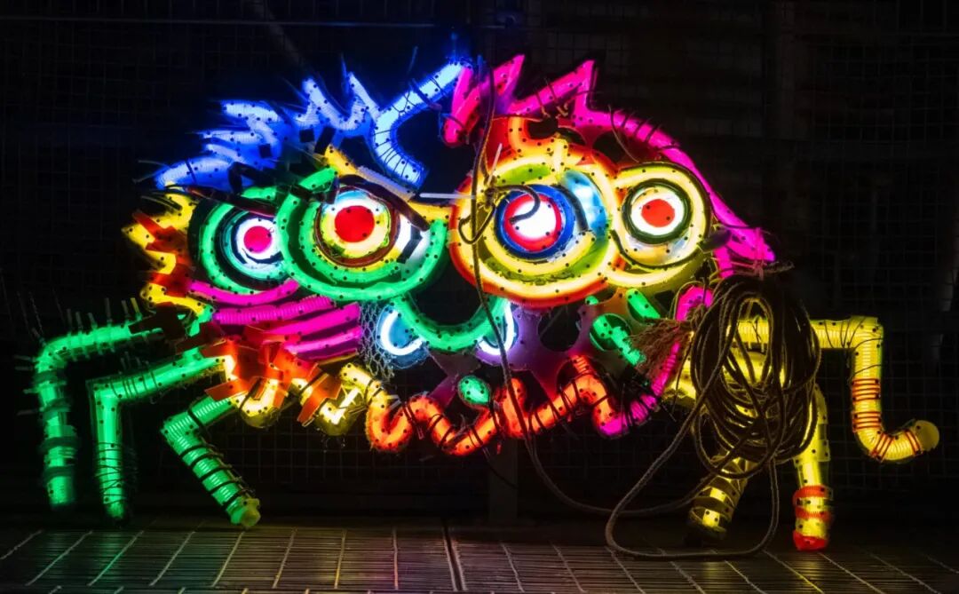 /艺术家变废为宝,把废弃灯管变成会发光的动物雕塑,精彩极了