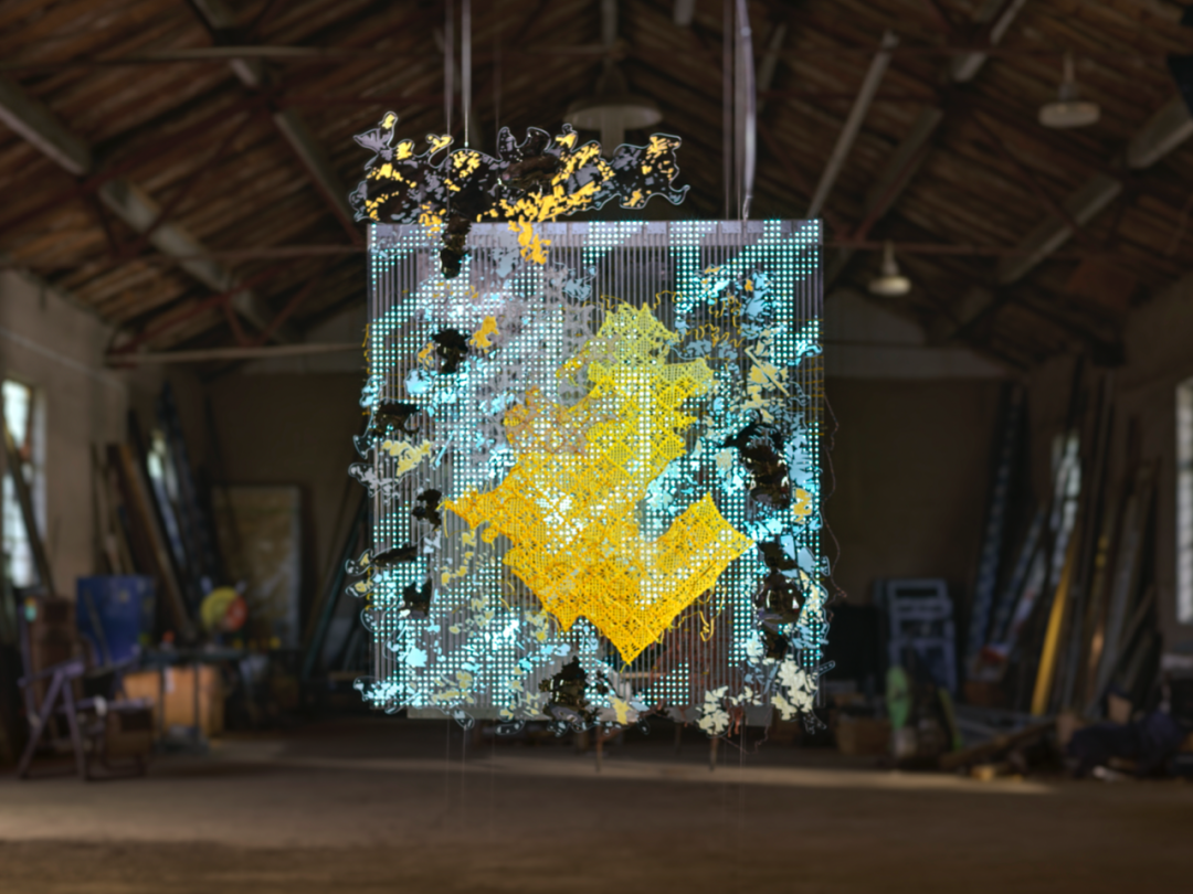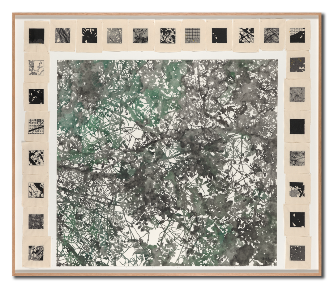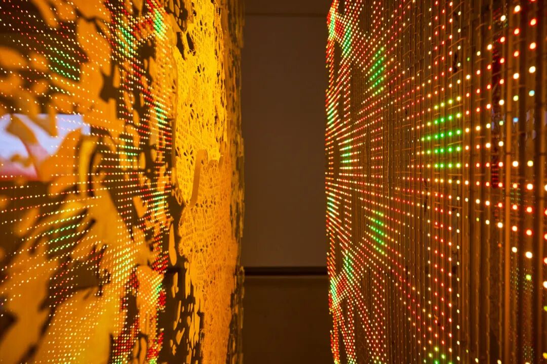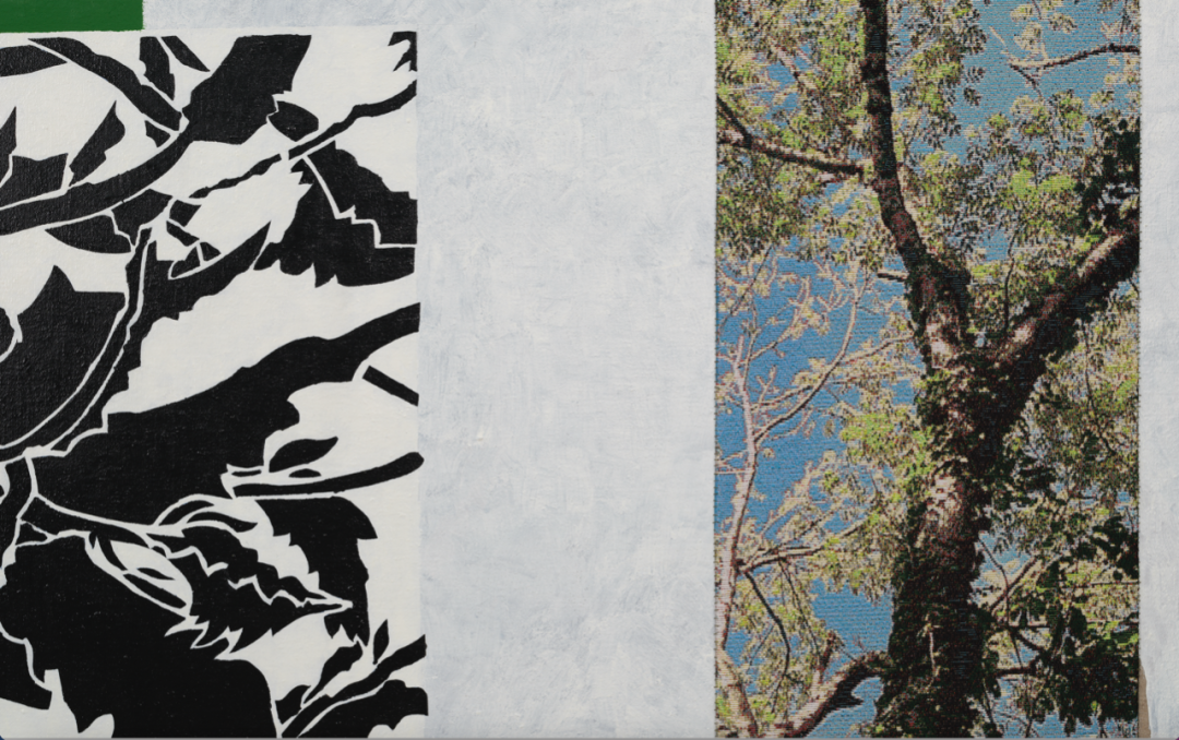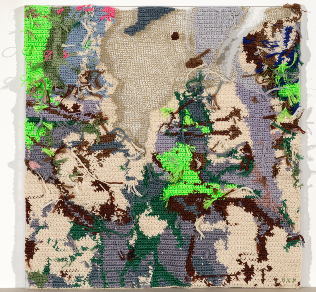 毕蓉蓉《平面生物——风景III》细节图。在作品中,毕蓉蓉将织片与平面创作融合。千高原艺术空间供图