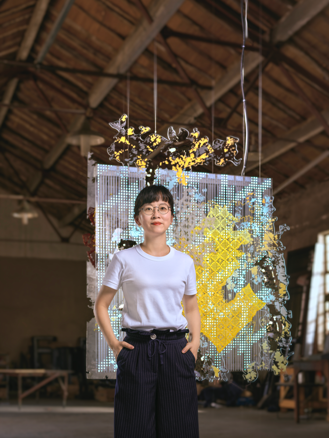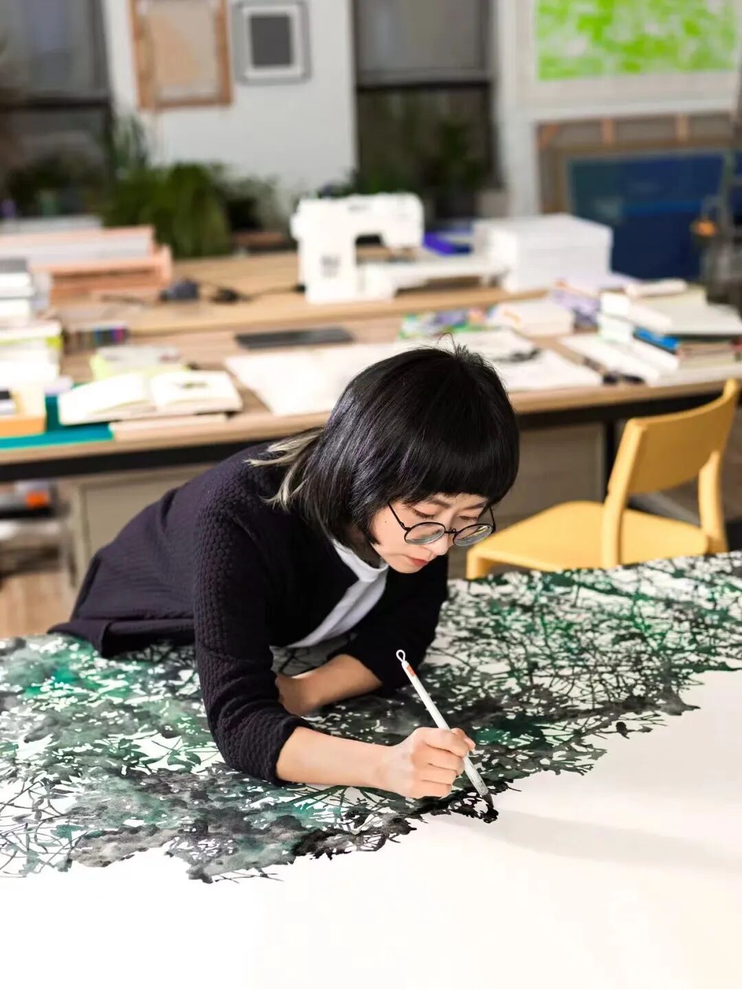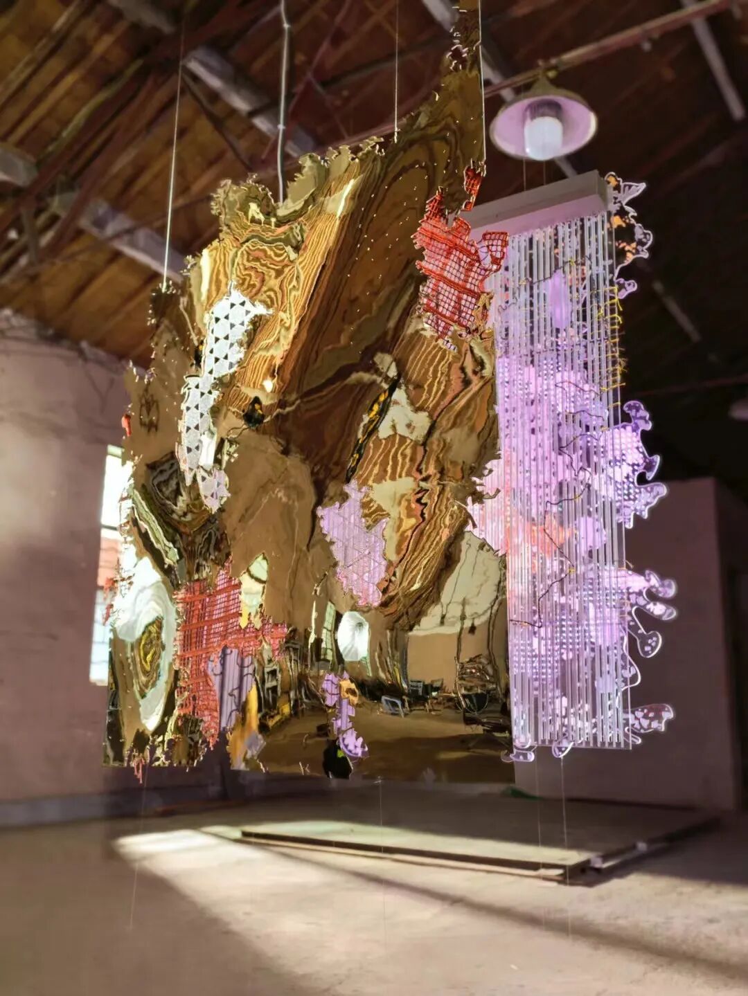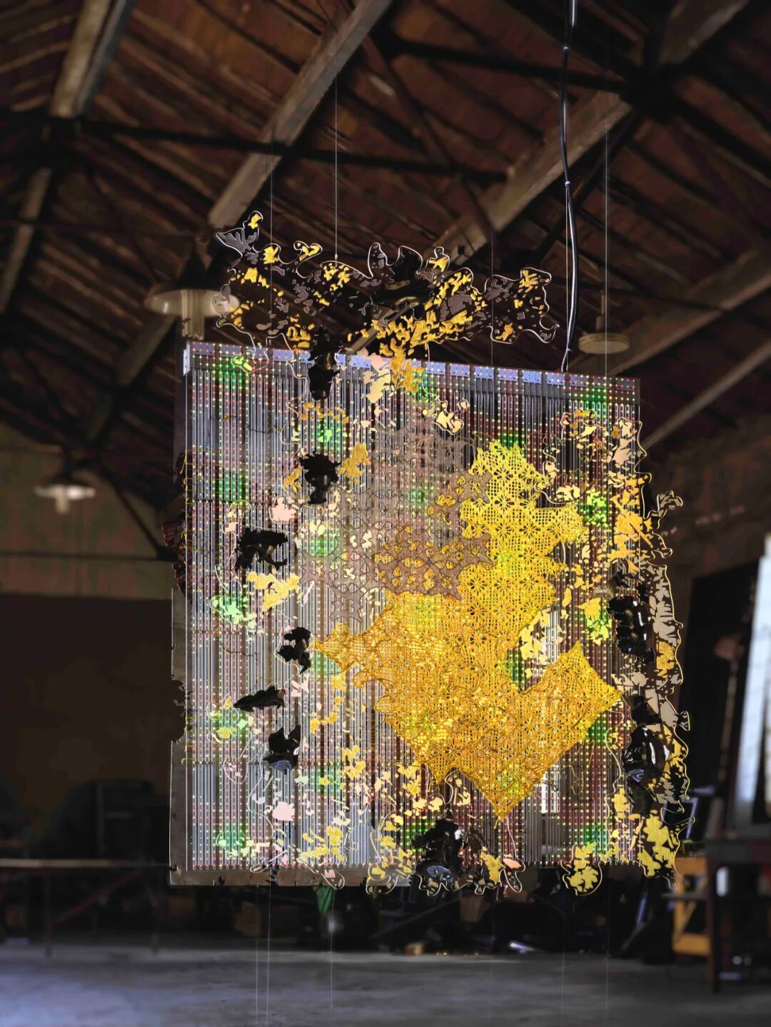 毕蓉蓉《平面生物——风景III》细节图。在作品中,毕蓉蓉将织片与平面创作融合。千高原艺术空间供图