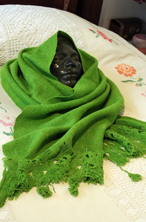 在弗里达故居的蓝房子,最后一个房间有告示告诉参观者,直到47岁去世那天,个人形象对弗里达依然很重要。在她去世那天,她的朋友给她换上传统的白色惠皮尔,用丝带为她编织好发辫,每个手指都戴上戒指。