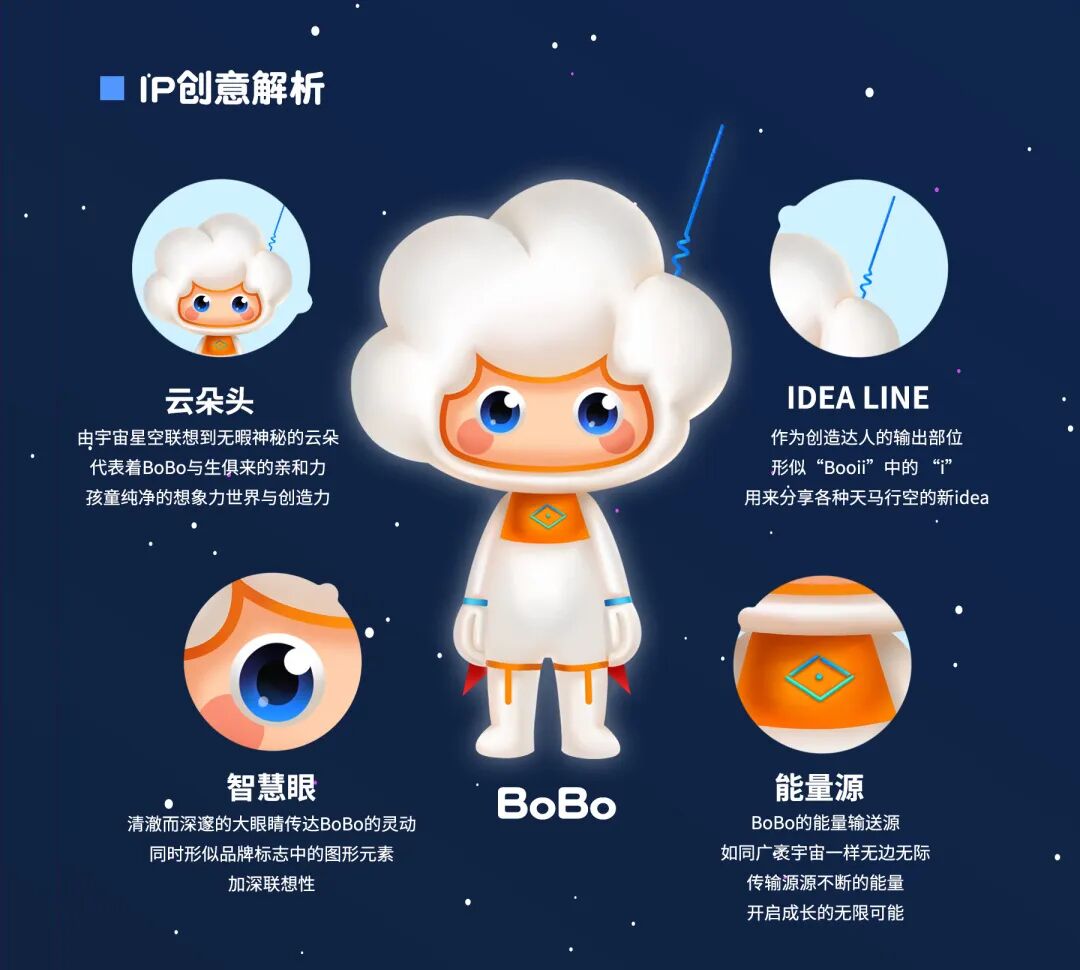 迎合品牌标志“星球”的氛围与神秘,在IP上增加科技感,统一品牌联想性,增强品牌亲和力的传达。