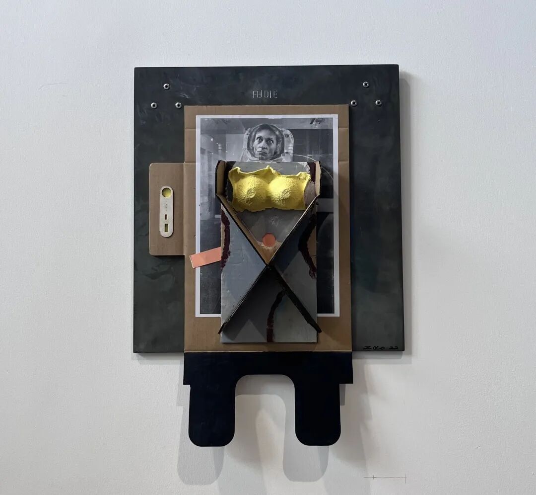 与林科类似,胡子赵洋也带来了他们于工作室中进行的媒介或图像实验的阶段性成果。胡子以近期尝试的新媒介UV打印在亚克力板上的方式制作了10套色的版画《凝视戈雅》,试图重现丝网版画的质感;赵洋则将疫情期间因为担心买不到画布而利用废旧纸箱创作的手稿和拼贴活动装置带到现场,纸箱成了一个随时引发联想、充满反讽意味和幽默感的微型叙事空间。