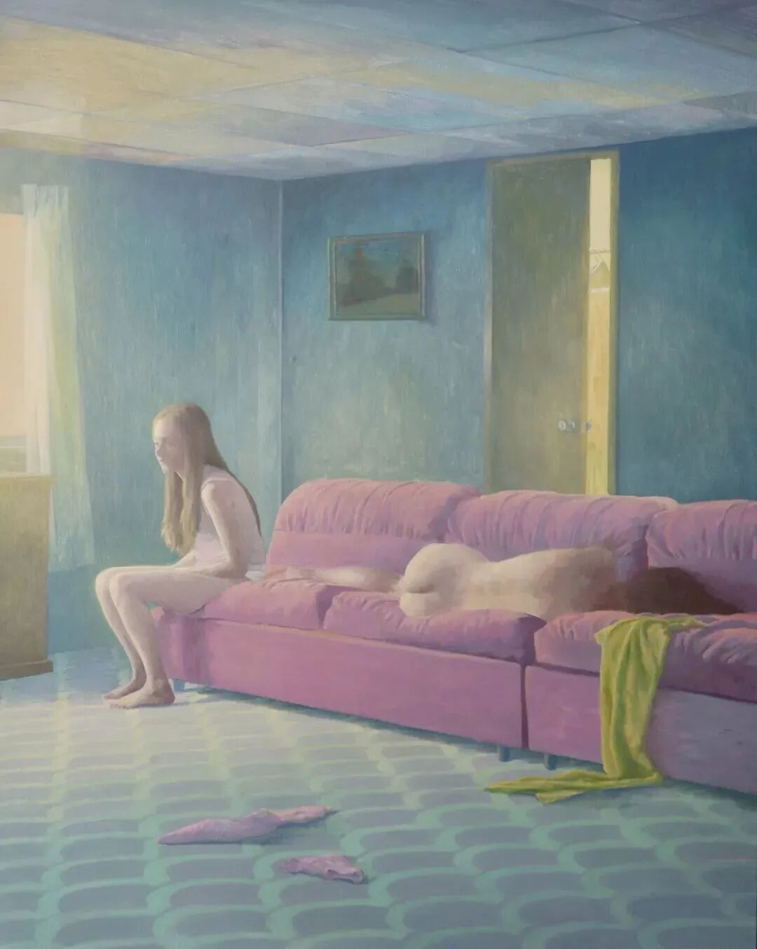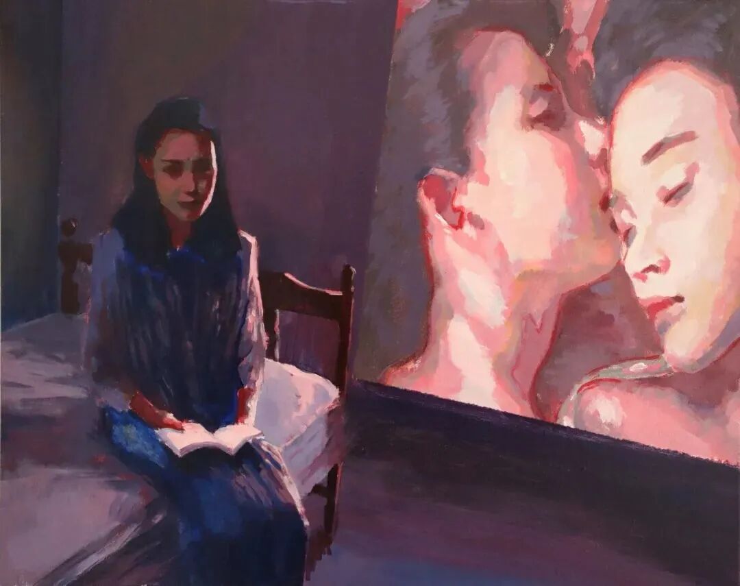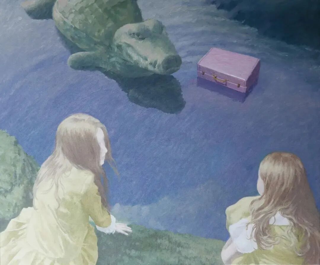 我的作品大多数发掘于自己拍摄的照片、互联网和我模糊的梦,在观察图像时产生联想与回忆,再将两个甚至更多的图像‘拼贴’在一起。我寻找与我产生关联的图像,再遵循内心去描绘它,我的作品就产生了。