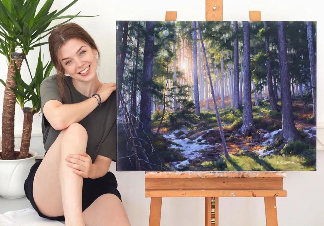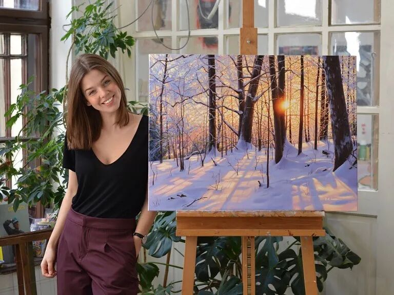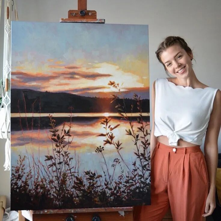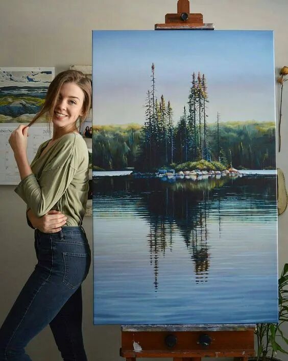 她说:“我深受自然世界的启发,因为在大自然中可以唤起许多不同的情感;清晨湖面飘起平静的薄雾,日落西山的浪漫,光线在森林中流淌嬉戏。我真的很享受将这些画面转化成绘画的挑战。”