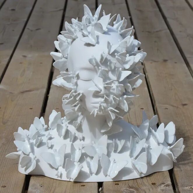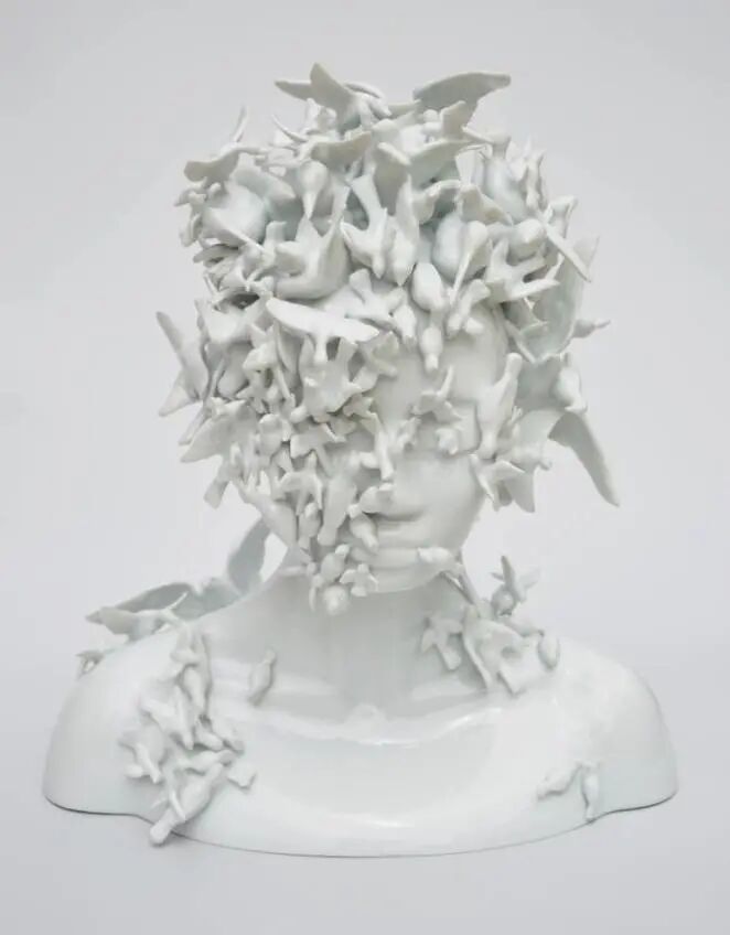 由朱丽叶·克洛维斯制作的陶瓷作品,花朵、蝴蝶、蛇和一些孢子植物,都与人类共存,它们就生存人类面孔上,这种超现实的雕塑作品,似乎在宣告一些生命的消亡,又宣告着一些新生命的诞生。