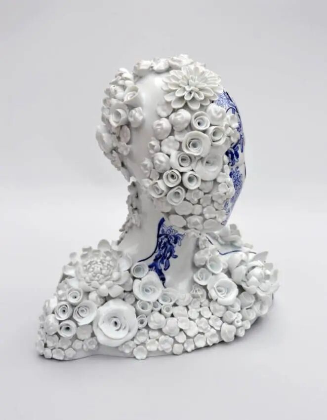 /艺术家用青花瓷,打造会开花的头像,给密恐患者看崩溃了