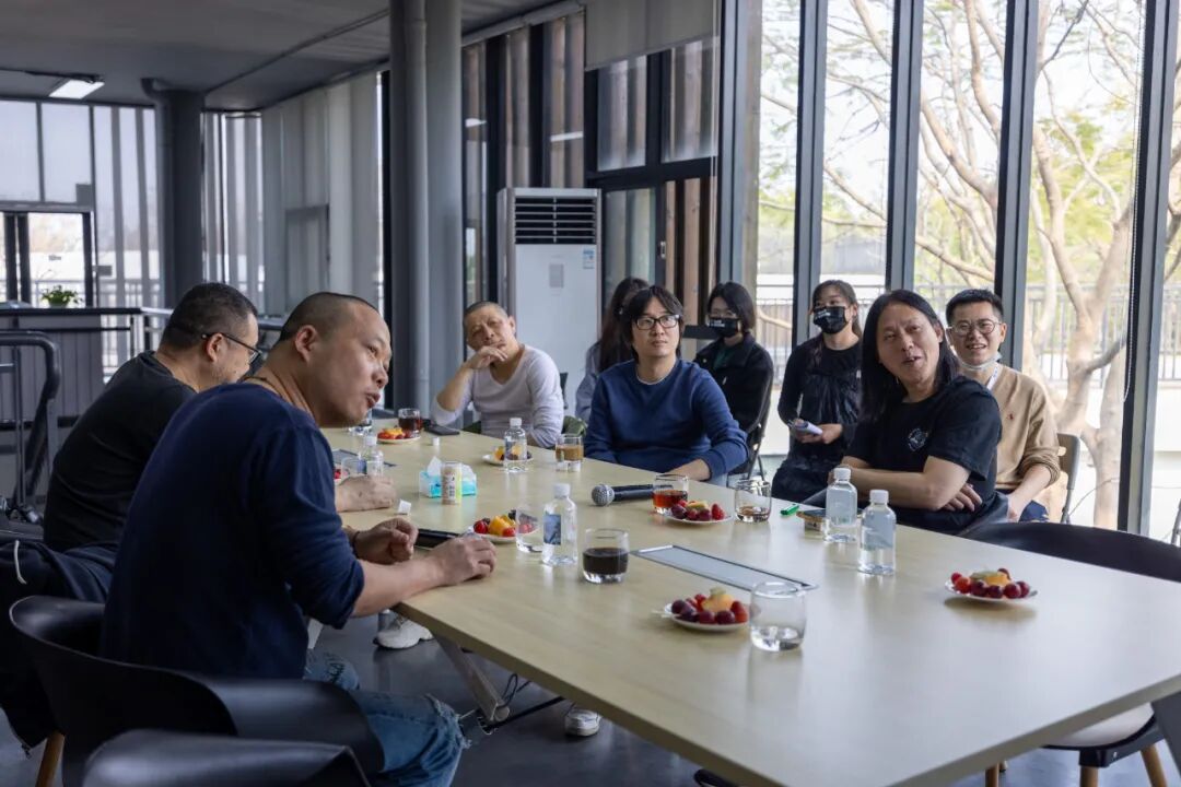 此外,在展览开幕前,针对展览主题开展了一场对谈活动。艺术家余极分享了“双皮奶”展览的创作灵感,以及其对当代艺术与“装饰”之间的看法,艺术家杨振中、艺术家何岸、艺术家金锋、艺术家陆平原等嘉宾亦分享了自己对展览的感受和理解,并且对作品议题展开了探讨。