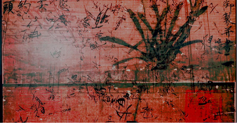 荧光材料、玻璃、宣纸、墨、紫光灯与木平台