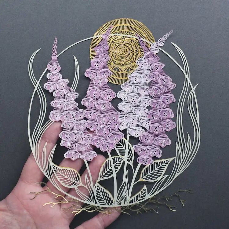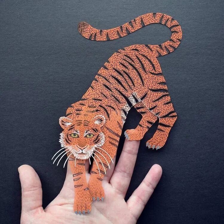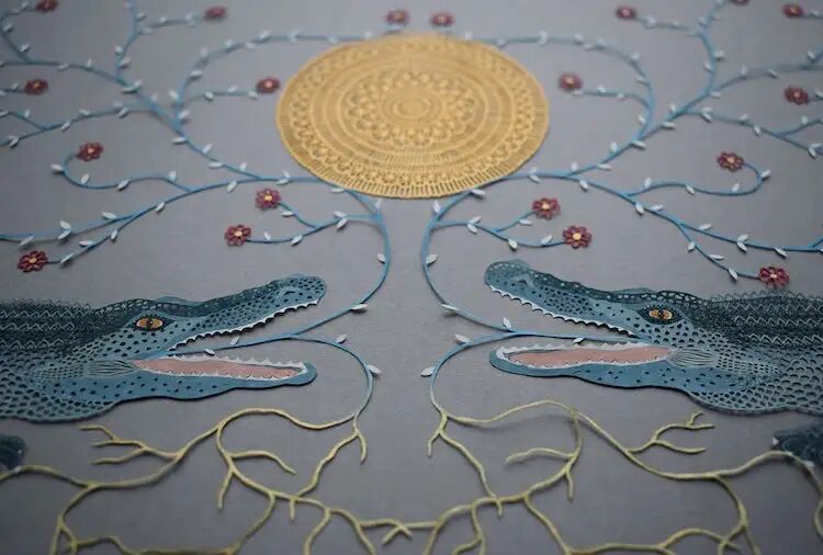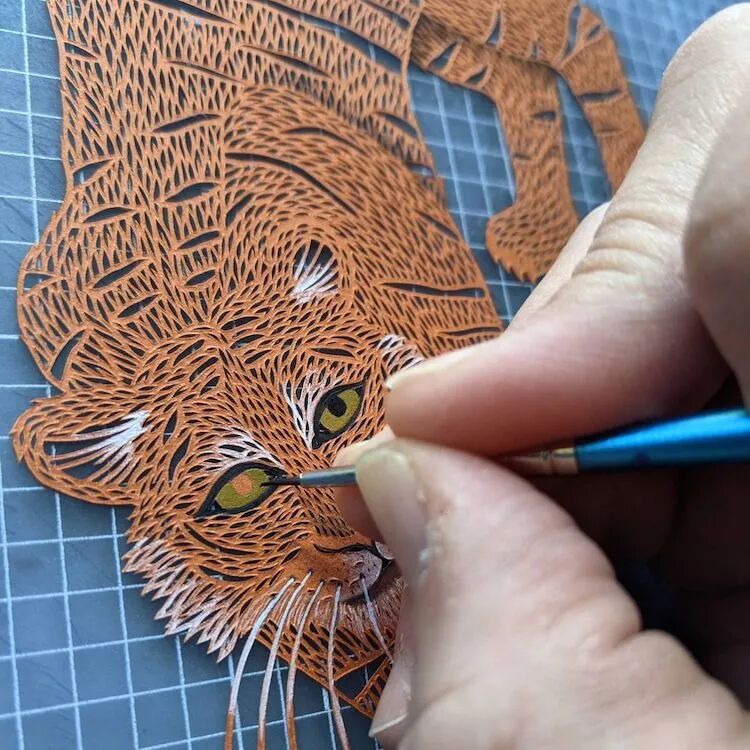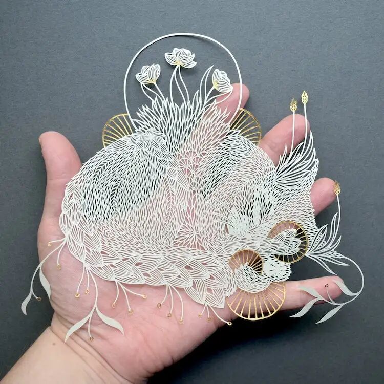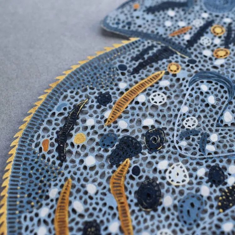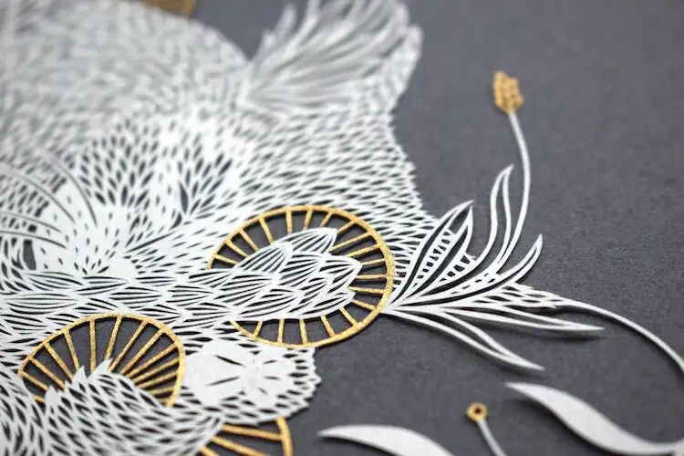 令人惊叹的是,皮帕·德拉格是在一张张薄如蝉翼的纸张上进行雕刻的,一把精密的刻刀,加上超乎常人的专注力,使得艺术家的每一件作品都有着大量复杂的细节,植物精致的叶脉和花瓣纹路,以及动物精致的毛发复杂的鳞片,都让人直呼不可思议。