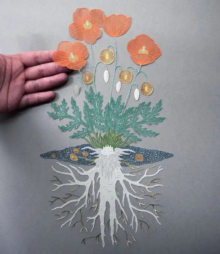 小绛就跟大家分享过很多精彩的剪纸作品,纸雕作品。来自英国的艺术家皮帕·德拉格同样热衷于剪纸,她创作了以大自然为灵感的剪纸作品,大量的细节,以及精致度令人吃惊。