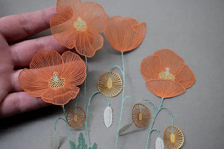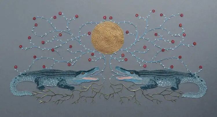 艺术家在薄如蝉翼的纸片上,雕刻复杂的动植物,精致得不像话