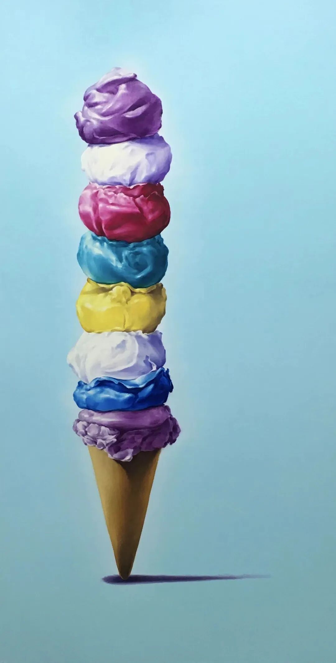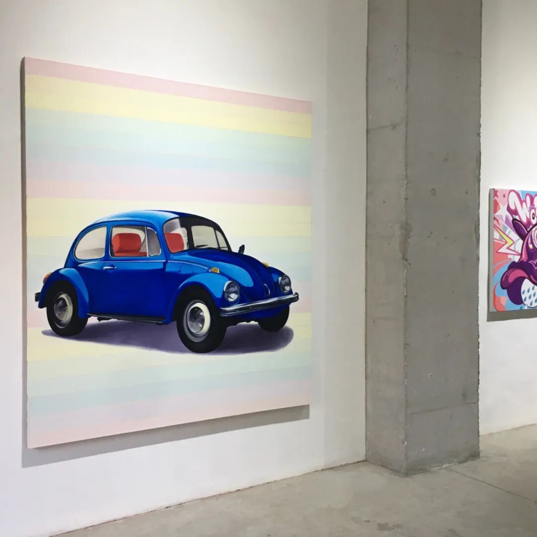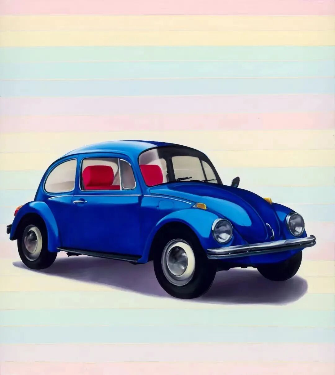 《早安,景老师》这幅作品,第一眼看见你就能认出它是辆已经停产的甲壳虫轿车,如经典般存在的甲壳虫是一代人难以抹去的情怀,但是看到作品名字你又会想它为什么会叫“景老师”。很简单,因为这辆车的主人正是景老师,而景老师又是对马焘在学习绘画时期影响非常大的人,这其实是睹物思人。所以当谜底揭晓的时候,大家多少觉得少了些趣味。可当你将车与马卡龙色的梦幻背景联系起来,就仿佛出现了梦境中的一个场景:清晨,马焘走在路上,一辆蓝色甲壳虫从远处疾驶而来,与景老师所开的车一样,他如在学生时代,脱口而出“早安,景老师”,“见字如面”的场景让观者不觉嘴角上扬......