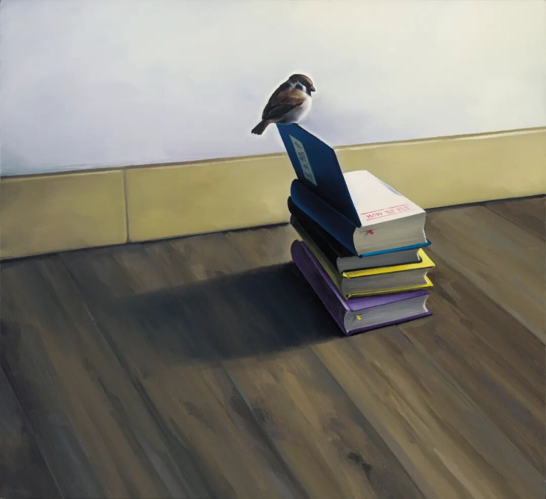 因为人是一种矛盾的生物,矛与盾永远对立存在,有了它们,这个世界才会格外出彩,绚丽而缤纷。我们都有双重人格,所以看马焘的画会很有趣,我们所看到的,是他当下或是曾经的种种情绪和思考,这些看似荒诞看似无理的认知,实际是一种乐观式的自嘲,用荒诞的手法改变时间、转换地域,将毫无逻辑关联的人和物并置,而这些看似风马牛不相及的人和物又产生了奇妙的相互解释、相互映衬的作用,它们彼此间的“心照不宣”总能令观赏者产生意会和思考。