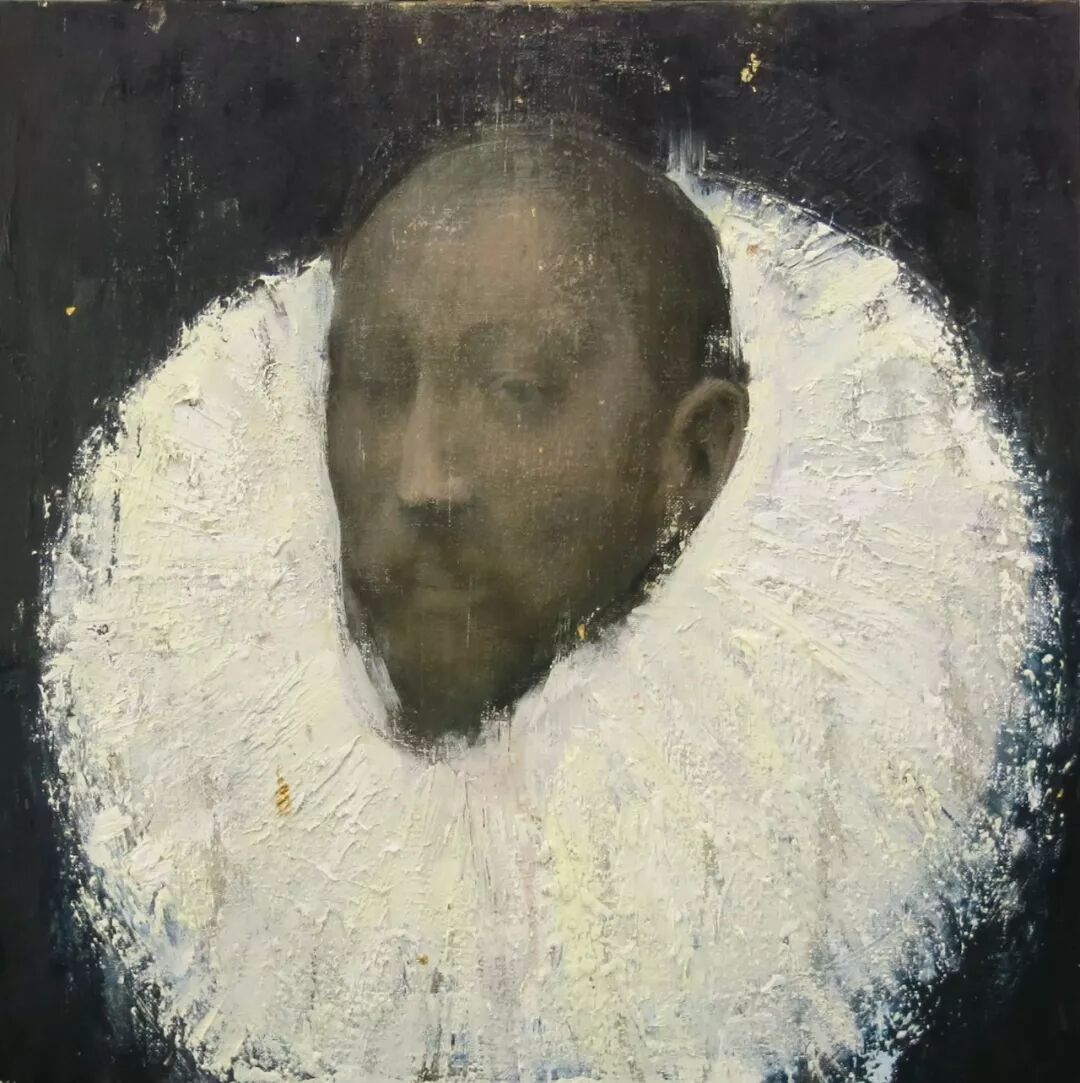 《呼吸者肖像20-头颅上的白色物》 60x60cm布面油画 2016-2018