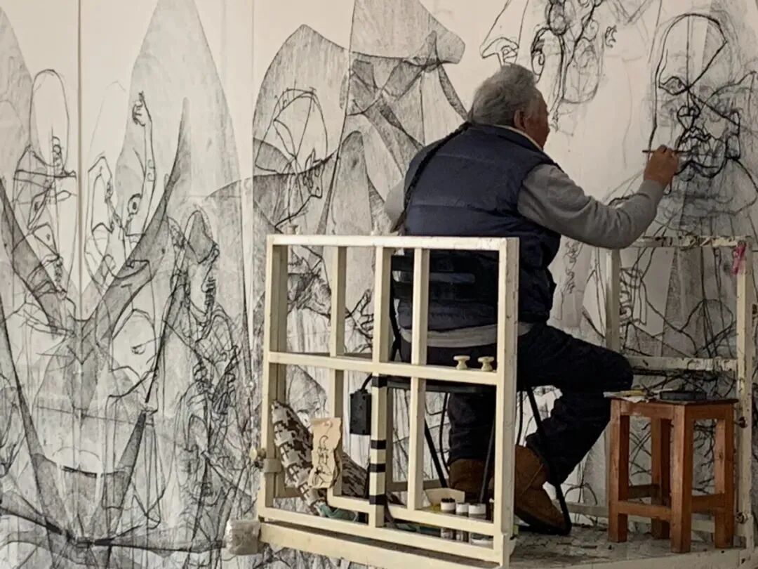 石虎:十三米巨制的创作,起始一种不经意的冲动。我的画室名《摩诘草堂》,是阿平信佛的因缘,画室里有很多经书,包括历代有关罗汉的画本。我不是佛教徒,但读起经书来颇有兴味,我感悟到佛经是最让我觉悟的艺术论。