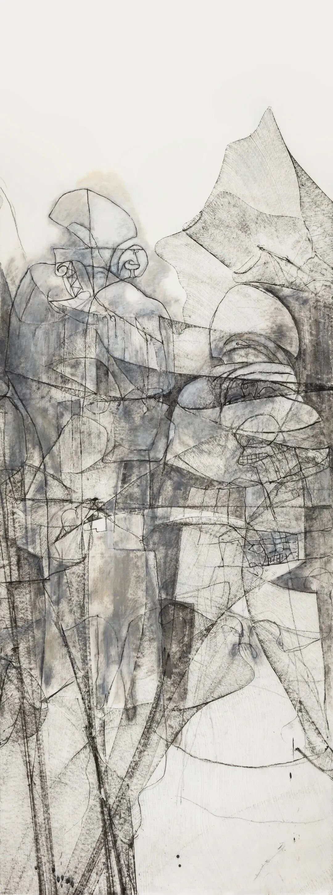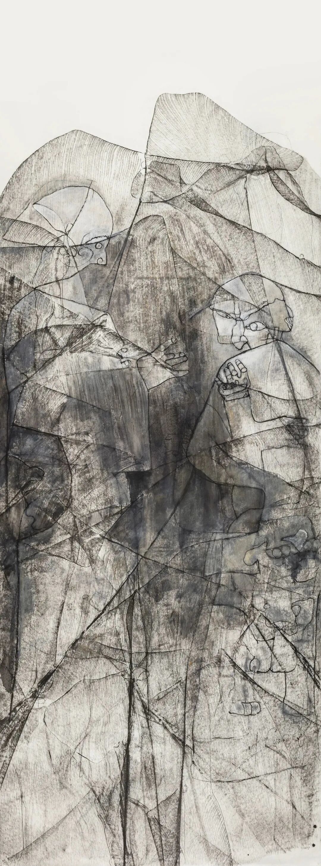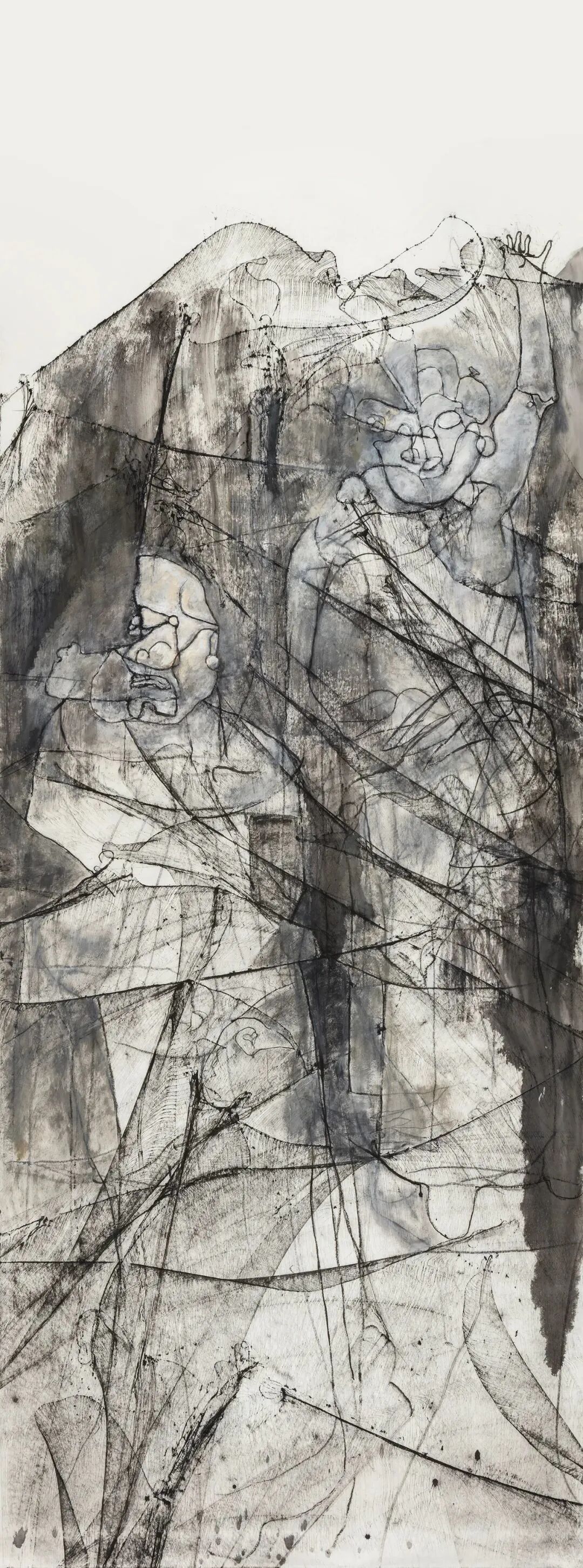 陈量:您的水墨依然围绕着您经常提到的线模、象式等中国思想问题展开。作品中墨线交织丛生,让我们不断想到您所说的象式、汉字思维。您常说,无形的象式与六书密切相关,《十八罗汉图》似乎从一个更加宏大的角度再一次着重诠释了这个问题,对此,您是否可以具体谈谈?