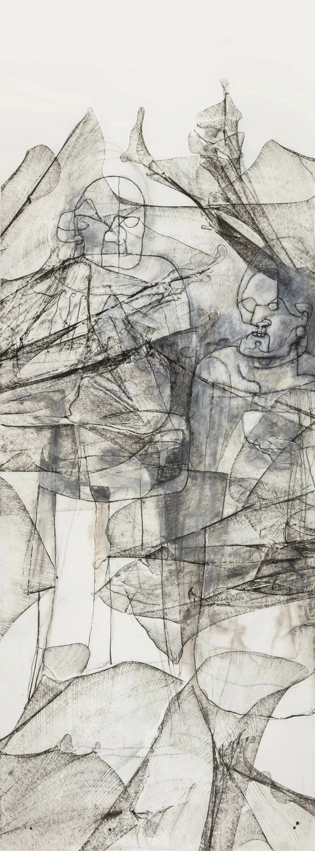 陈量:在您的新作《十八罗汉图》中,我们看到了纵横有致、弯曲交织的线丛,您曾说“一条线就是一个宇宙”,依此,我们是否可以将此作中交叠丛生的十八罗汉线模看成是“宇宙丛”?