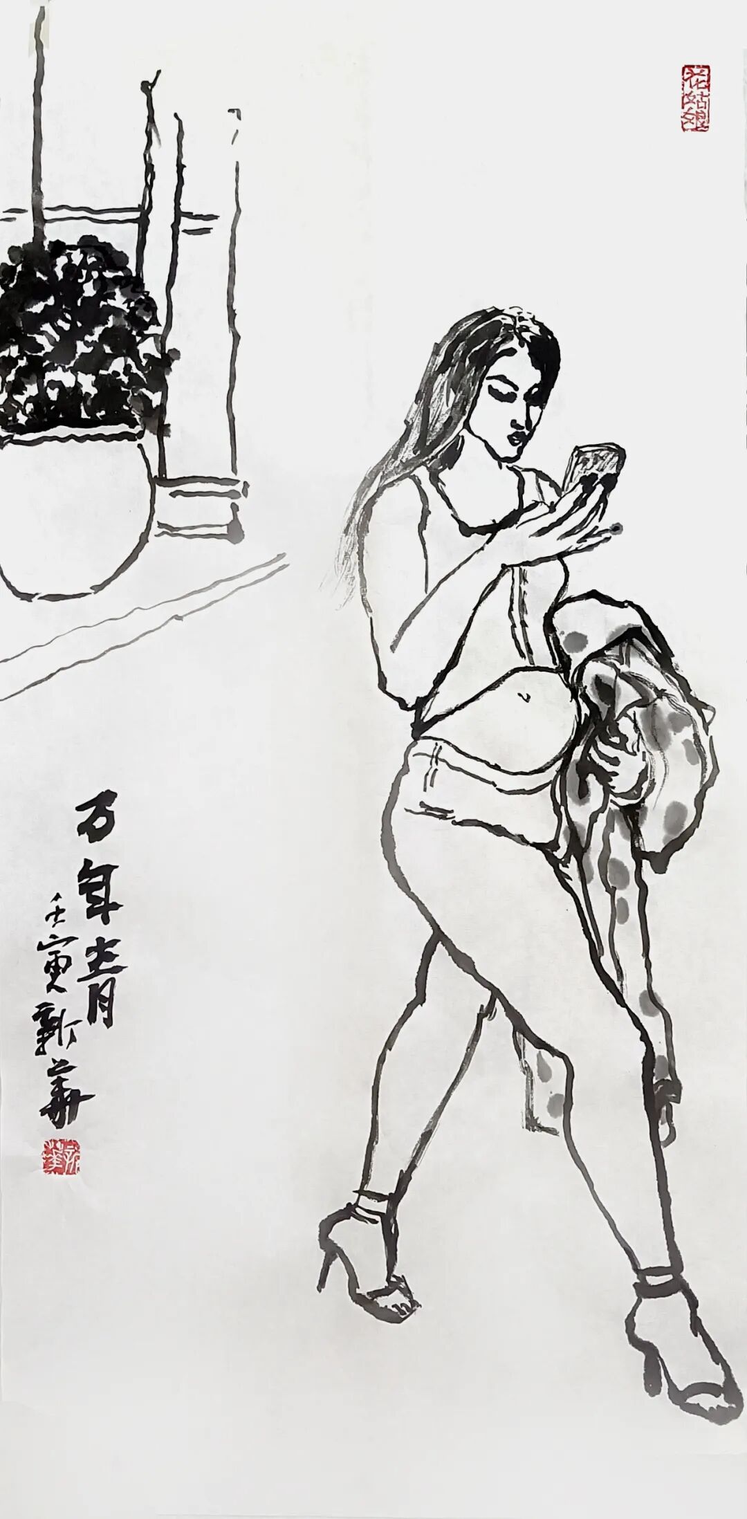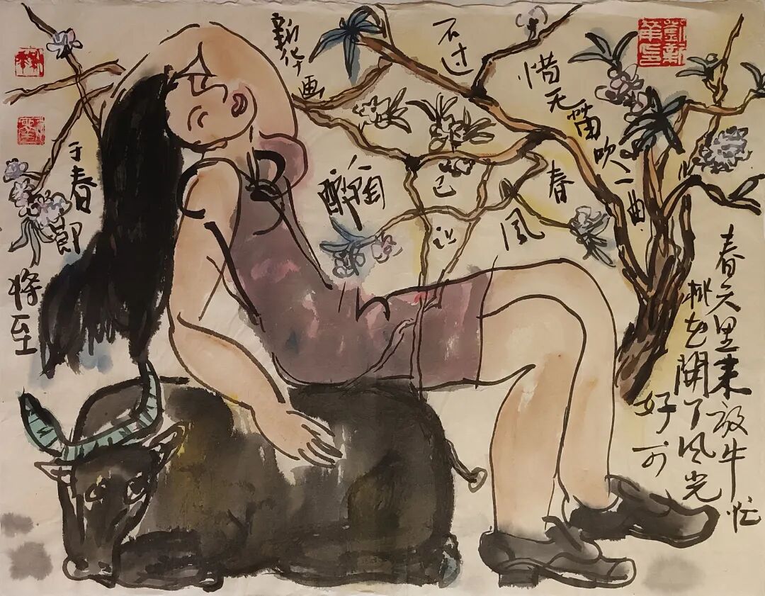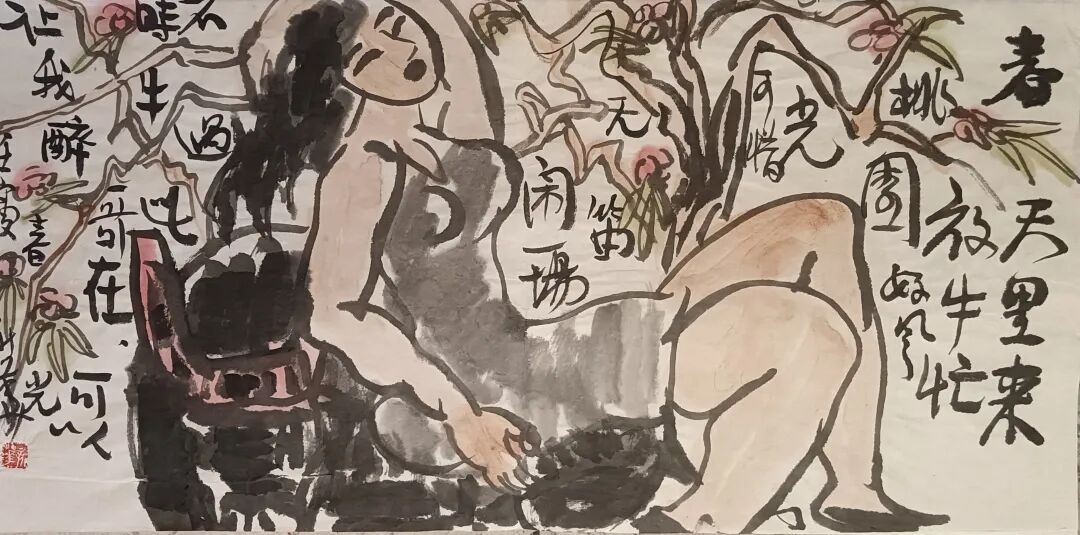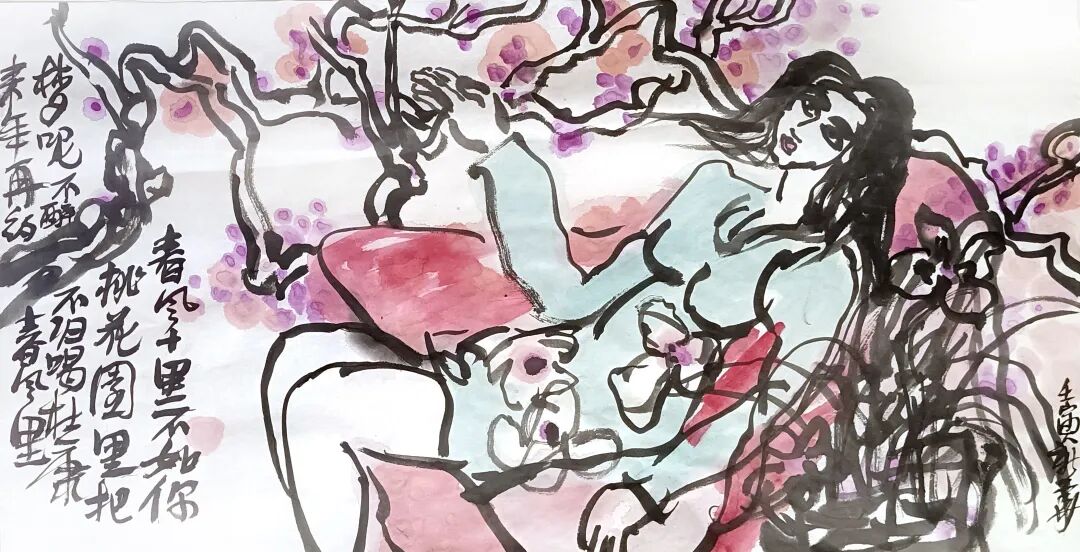 我的绘画是热烈和阳刚派,我以为如果艺术没有像太阳一样照耀和温暖着人类的精神,给人类精神以自由的生发和成长,哪还要艺术干什么?我的绘画,正是要表达岀自由的阳刚的生命的力量。我的绘画是生长的,是开放的,进取的,是精神层面的表达。我不再是古贤的小学生,也不会去简单地再现生活。我要从自由精神的层面升华和強化今人的绘画,展示人类审美进程里今天的面貌。我会率性地表达自我,发展自我,深刻自我,強健自我,成为自我,做自己时代的艺术家。