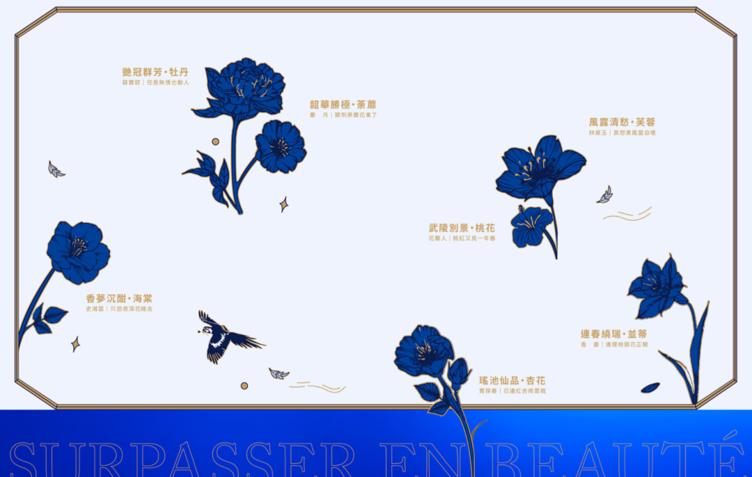 并通过细腻的金线烫印工艺和洛可可中国风笔触