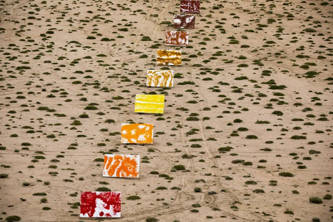 《彩虹》系列是刘商英在新疆阿尔金山项目创作的最后一件作品。当七彩之光乍现之时,荒野在转瞬间成为天堂之地,这样的情境对于艺术家来说是一种恩赐。刘商英将这一组纯粹单色的绘画,一层层地有序排列,穿过这条绘画的彩虹,刘商英从这座山到达了那座山。
