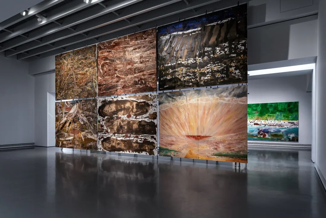 四号展厅汇集了艺术家创作于额济纳旗、罗布泊、阿尔金山和天山的14幅作品,体现了艺术家在不同地点的创作方法和绘画面貌。在展厅中,来自四个地点的画作以一种自由的方式并置在一起,不拘泥于创作期间的时空逻辑。展厅中部,由大型脚手架与绘画组成的装置,模拟了艺术家作品在创作地现场的展示方式,为展厅带来了粗犷有力的美学体验。