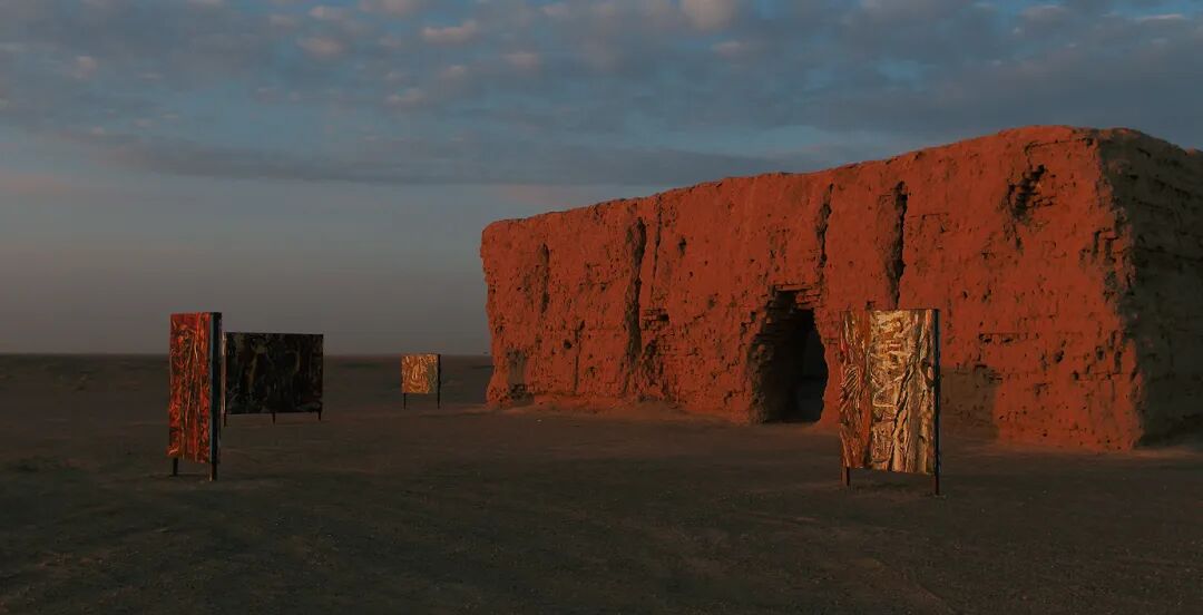 在十二年间,艺术家刘商英行走在远离人群的荒原,多次深入西藏阿里、内蒙古额济纳旗、赴新疆罗布泊、阿尔金山、天山等地。以现场写生创作,或画布拓印地貌结构的方式,汇同彼时的思想肌理,动物和胡杨木残骸等种种生命碎片,全部融入于野外绘画行为的图像景观。