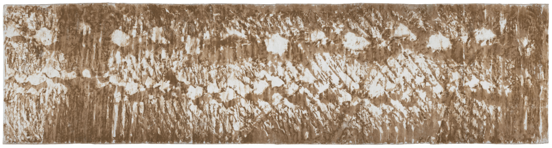 《荒原计划21号》创作于2019年,是刘商英在新疆罗布泊“荒原计划”中完成的最后一件,也是目前为止艺术家创作的最大独幅绘画。一望无际的荒原和雅丹地貌给予了刘商英震撼灵魂的体验,也激发了他全新的创作方法。刘商英将近38米画布铺放在跌宕起伏的雅丹地表,并匍匐于画布之上,直接用手蘸上颜料去抚摸大地。他用触觉直接面对绘画,在画布上留下了与自然碰撞的痕迹,并获得了一种与世界交流的自由感知。