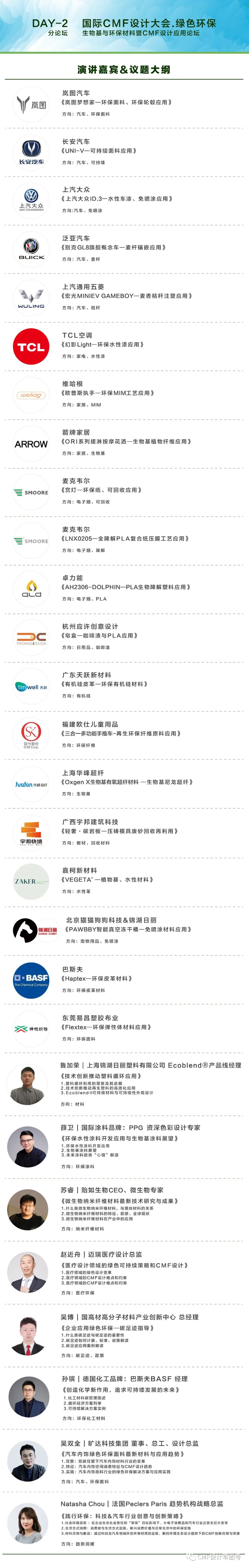 目前,三星、小米、oppo、vivo、伊莱克斯、迈瑞、宝马、上汽、一汽、北汽、吉利、东风、比亚迪、长安、长城、美的、TCL、创维、海信、万和、努比亚、方太、万魔、传音、倍思、卓力能、老板、华帝、麦克韦尔、合元、中兴、BOSE、科大讯飞、联想、康佳、欧派、顾家、特步、巴斯夫、陶氏化学、Sabic、PPG、宣伟、大金氟化工、默克、普利特、锦湖日丽、LX Hausys、英国Poly materia、贻如生物等600+行业精英均已报名!点击下方图片可查看报名企业详细名单,大会详情如下: