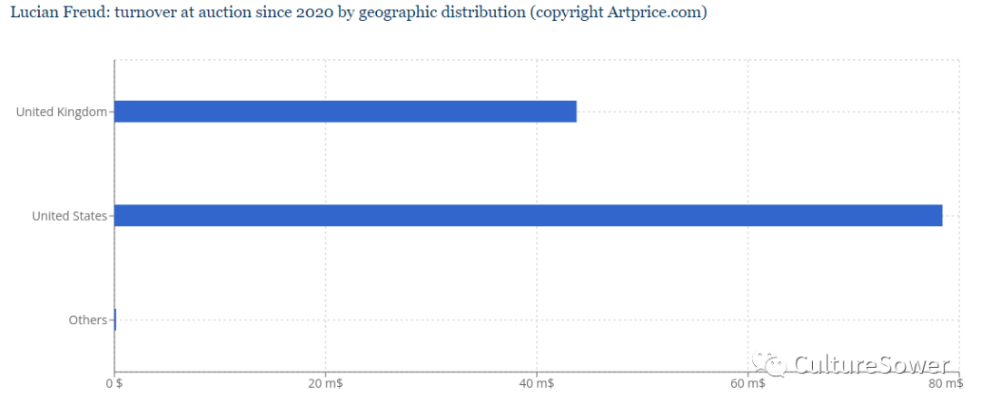 卢西安·弗洛伊德:2020年以来按地域分布划分的拍卖成交额(版权Artprice.com)