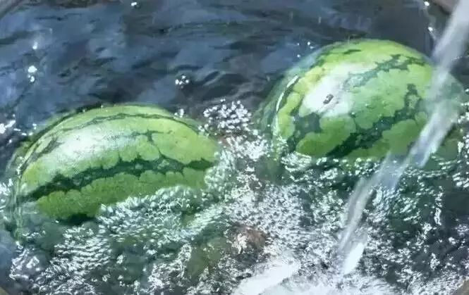 西瓜都透着一股热气,那个时候家里没有冰箱。接一盆凉凉的水,把西瓜放里边泡半个钟头。