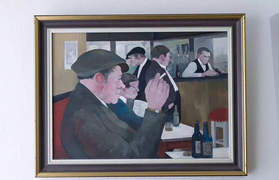 Eric笔下的画多是英国北方工人阶级的工作环境,以及烟雾缭绕的酒吧、俱乐部的生活场景。