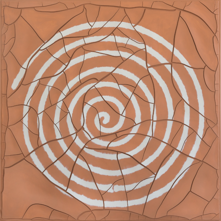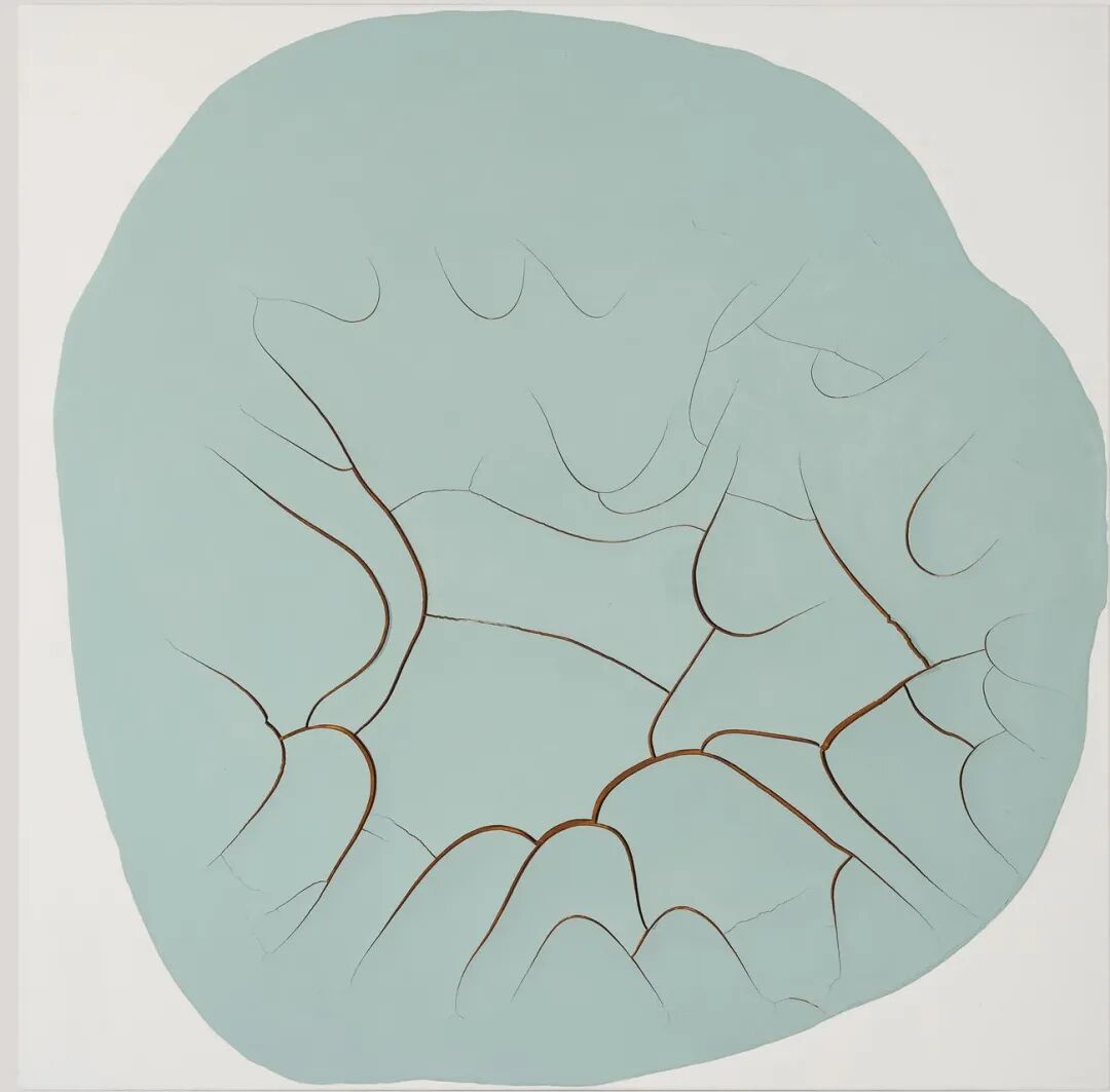 在创作作品时,她往往会在平放的帆布上涂上一层厚厚的粘性石膏;随着石膏慢慢干燥,形成的裂缝会产生深层表面裂缝的制图。