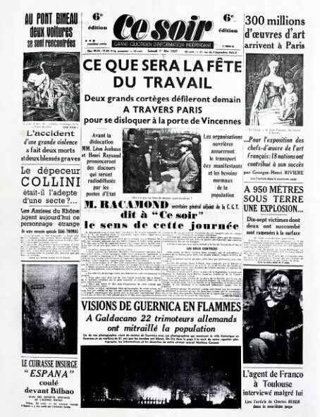 战争惨无人道,5月1日毕加索获悉了这场惨绝人寰的空袭。