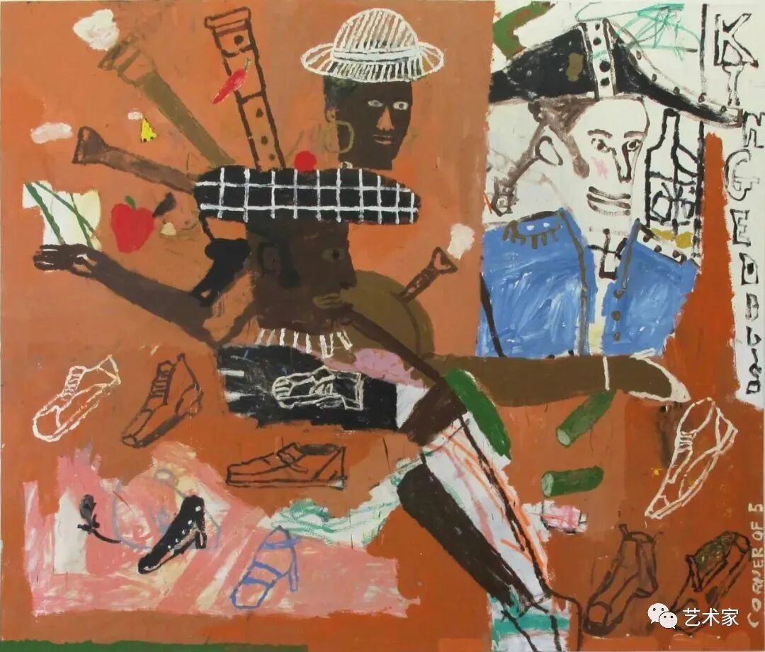 福克斯在探索各种复杂性和抽象性的同时仍保持着原初的艺术态度。其作品从不显得劳累,而是以一种自发的乡土能量振动,诡异而幽默。尽管人物和周围的图像乍一看似乎很有趣,但在表面之下却有着引力和心理复杂性。