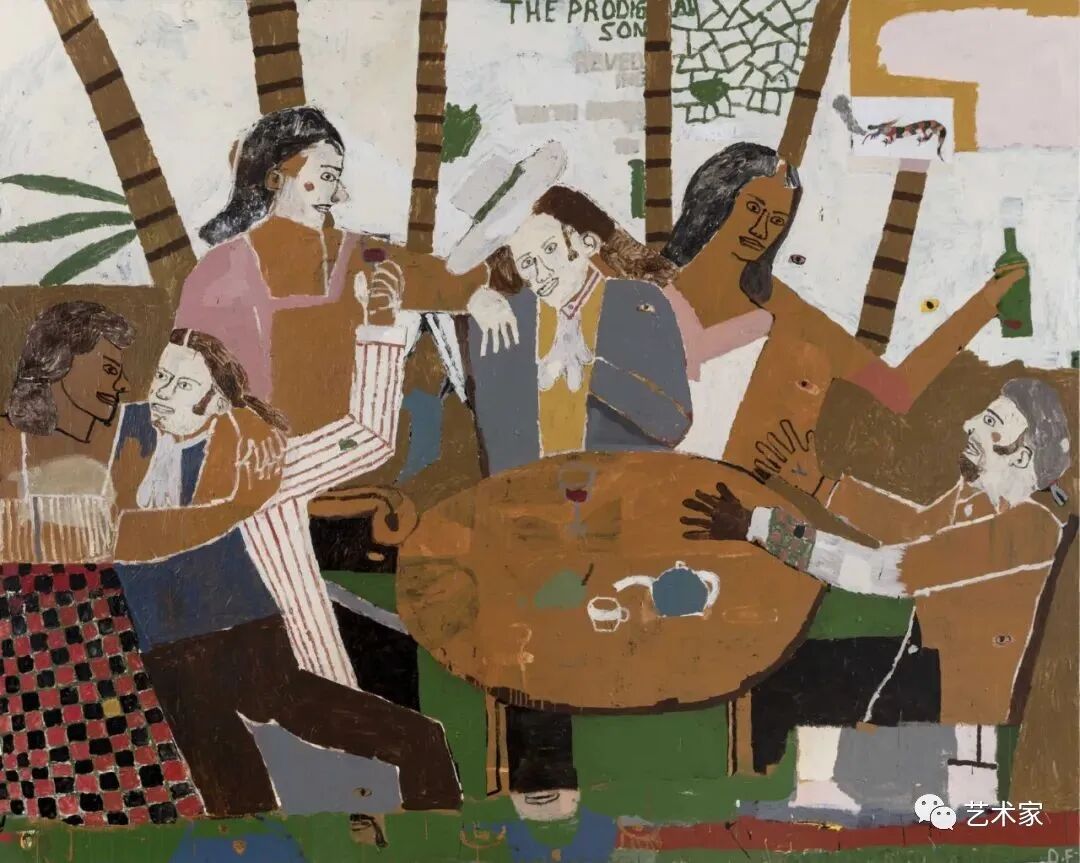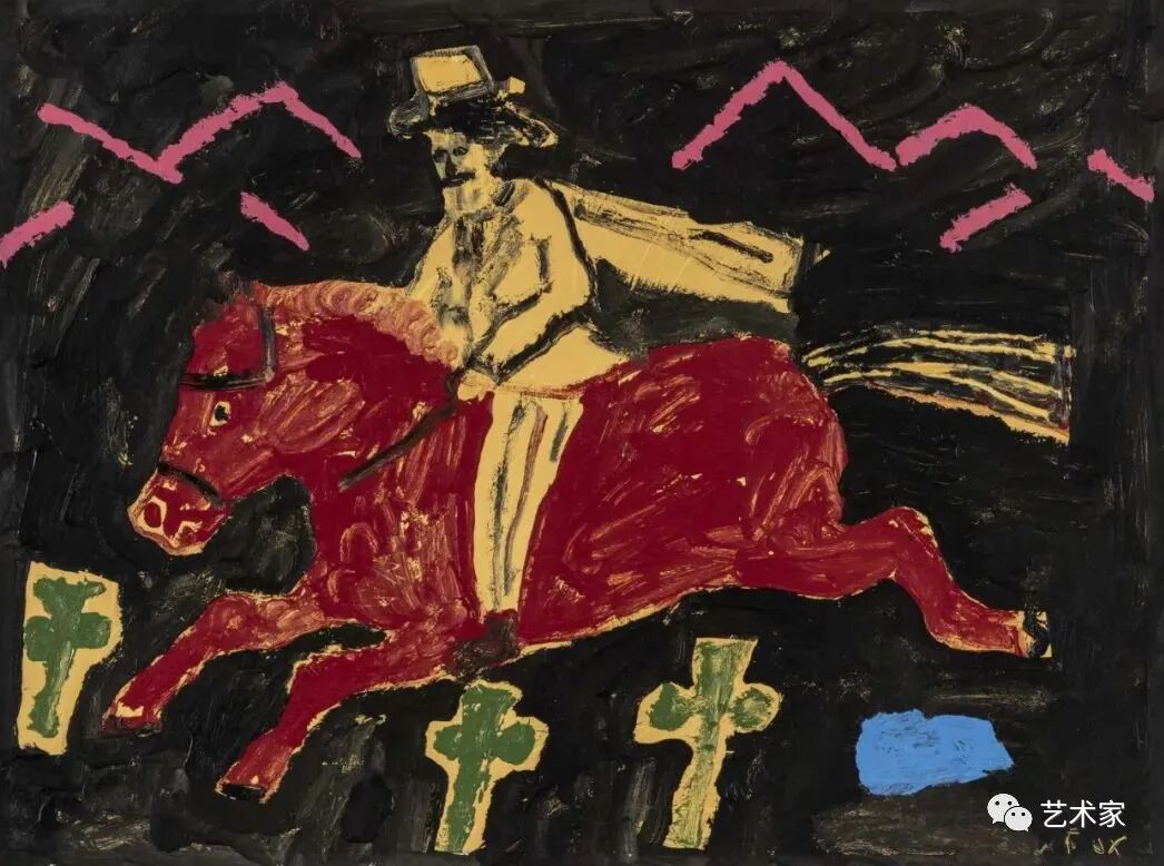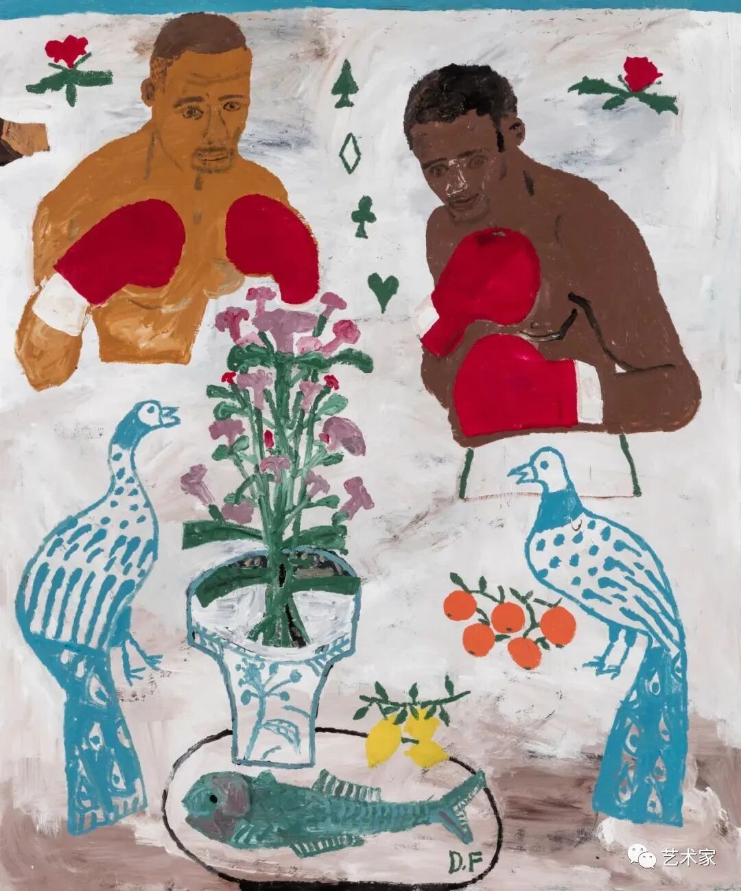 福克斯在探索各种复杂性和抽象性的同时仍保持着原初的艺术态度。其作品从不显得劳累,而是以一种自发的乡土能量振动,诡异而幽默。尽管人物和周围的图像乍一看似乎很有趣,但在表面之下却有着引力和心理复杂性。