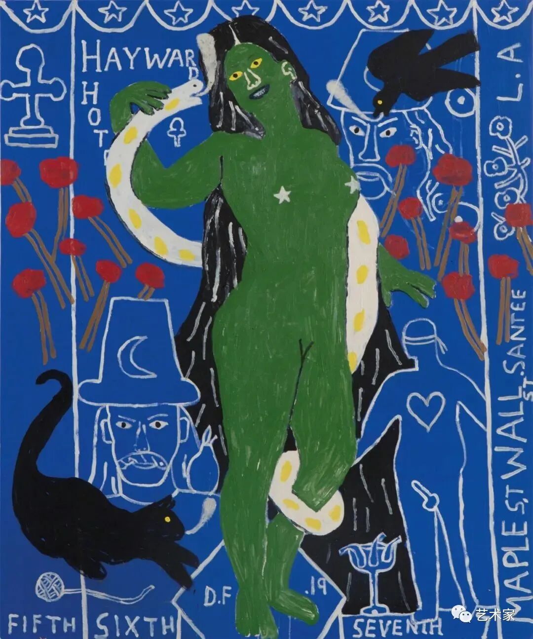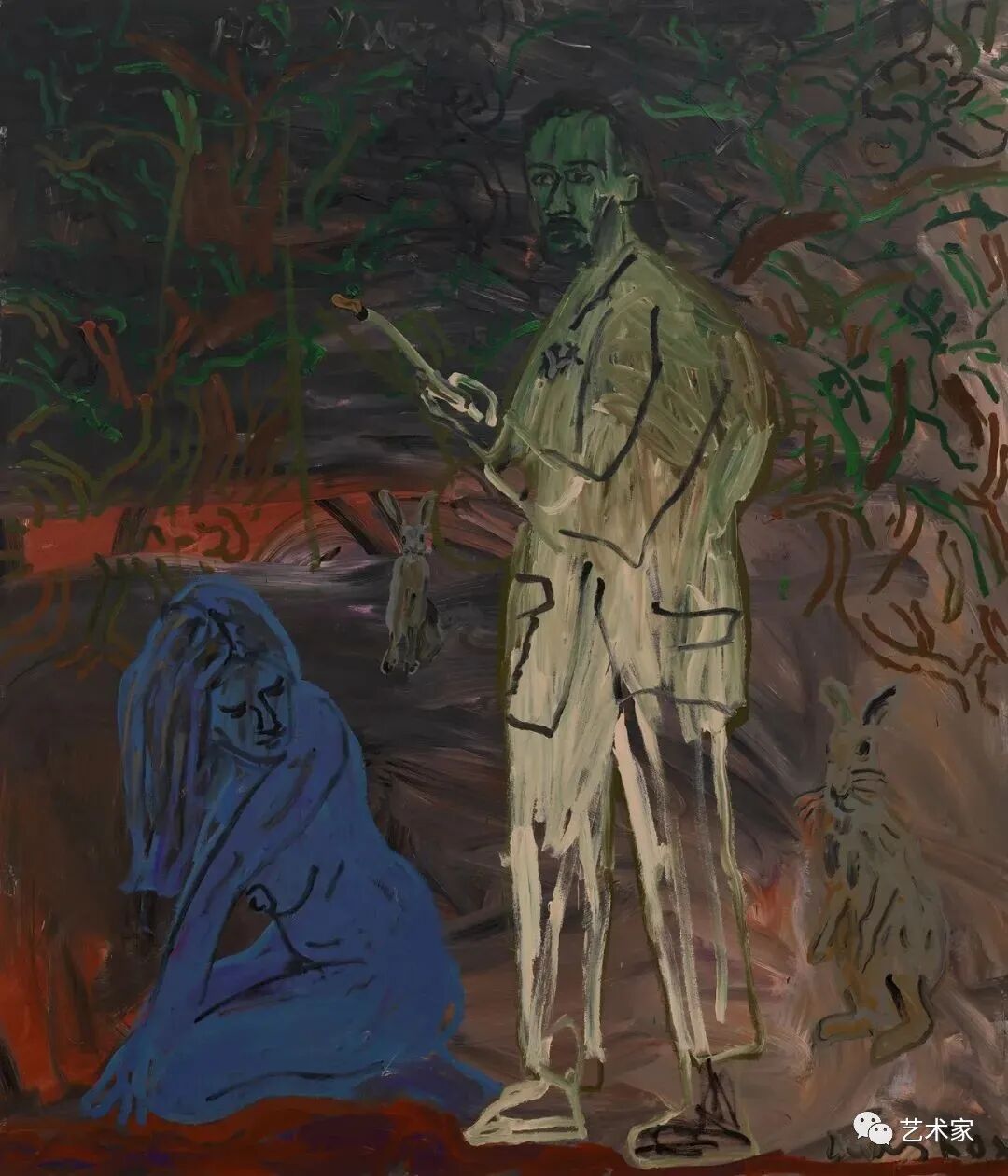 福克斯他的绘画从传统文化的混搭到无背景历史的神话人物及想象中的人类保持一致。与此同时,他的画作可以理解为漫无目的的视觉侵略。在画布上描绘了不同的结局,形成了万花筒般的叙事方式,创造了一种毫不妥协的绘画风格。