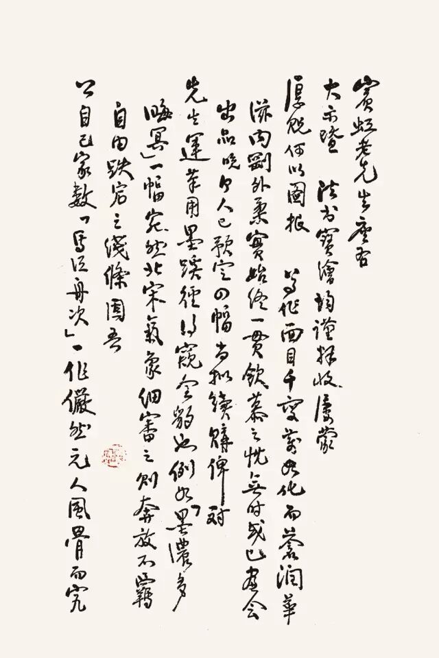 至于从未下过真功夫而凭秃笔横扫,以剑拔弩张为雄浑有力者,是自欺欺人,如大师即是。来书以大师气魄豪迈为言,鄙见只觉其满纸浮夸,如其为人,虚张声势而已……