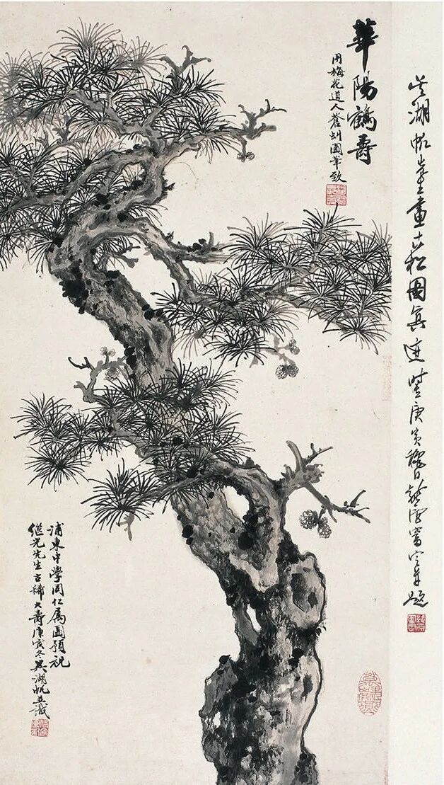 吴昌硕全靠“金石学”的功夫,把古篆籀的笔法移到画上来,所以有古拙与素雅之美,但其流弊是干枯。