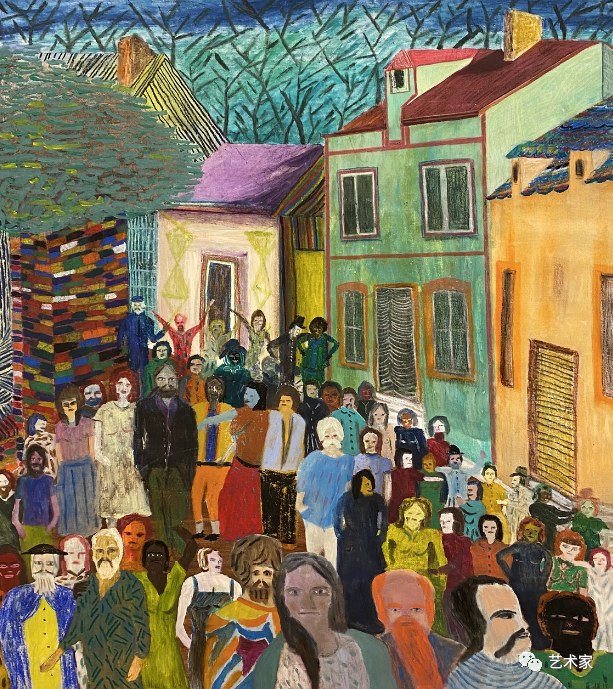 威廉姆斯说:“我更多考虑的是局外人和被逼入职场的人的社会边缘。画里那些连接在一起的线,就像所有不同类型的人聚集在一起,这是他们一直以来的想法,不断地寻找某种乌托邦和内心的平静,今生今世,下一世。”