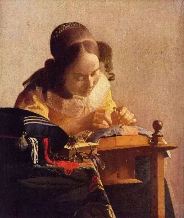 《花边女工》是荷兰画家维米尔的代表作之一,以诗意化的方式描绘了一个编织蕾丝的女工正用手指不断地穿针引线的情景。