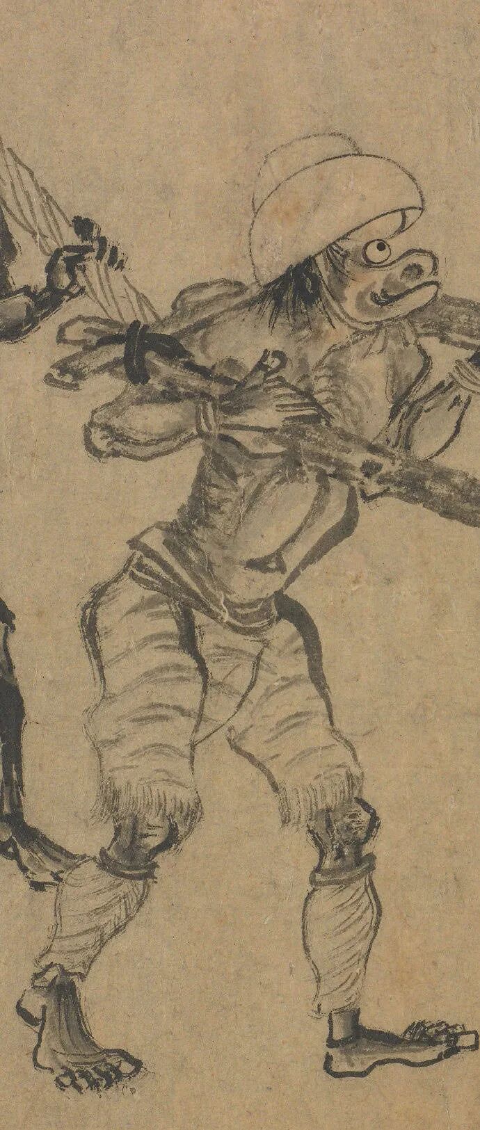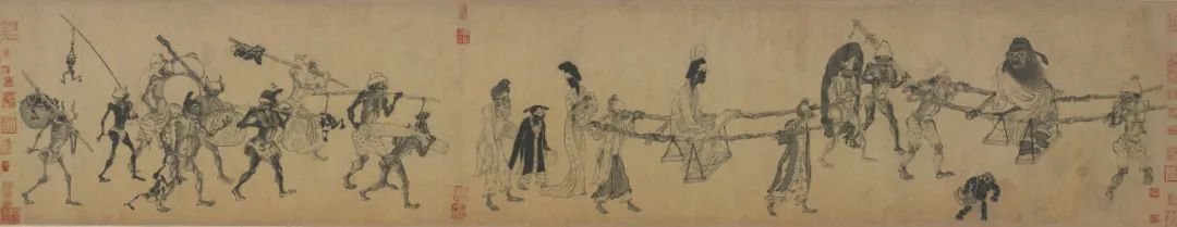 在这里我们想到了有名的《鬼趣图》,这是罗两峰一系列的杰作,直把人世百态讽刺个够。