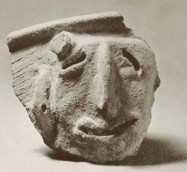 比孔夫子再早上两三千年的中国人,都还懂得幽默呢。不信,请看在陕西扶风地方发现的一件仰韶陶器,在红陶残片之上,有一个“尴尬”的中国人面孔!